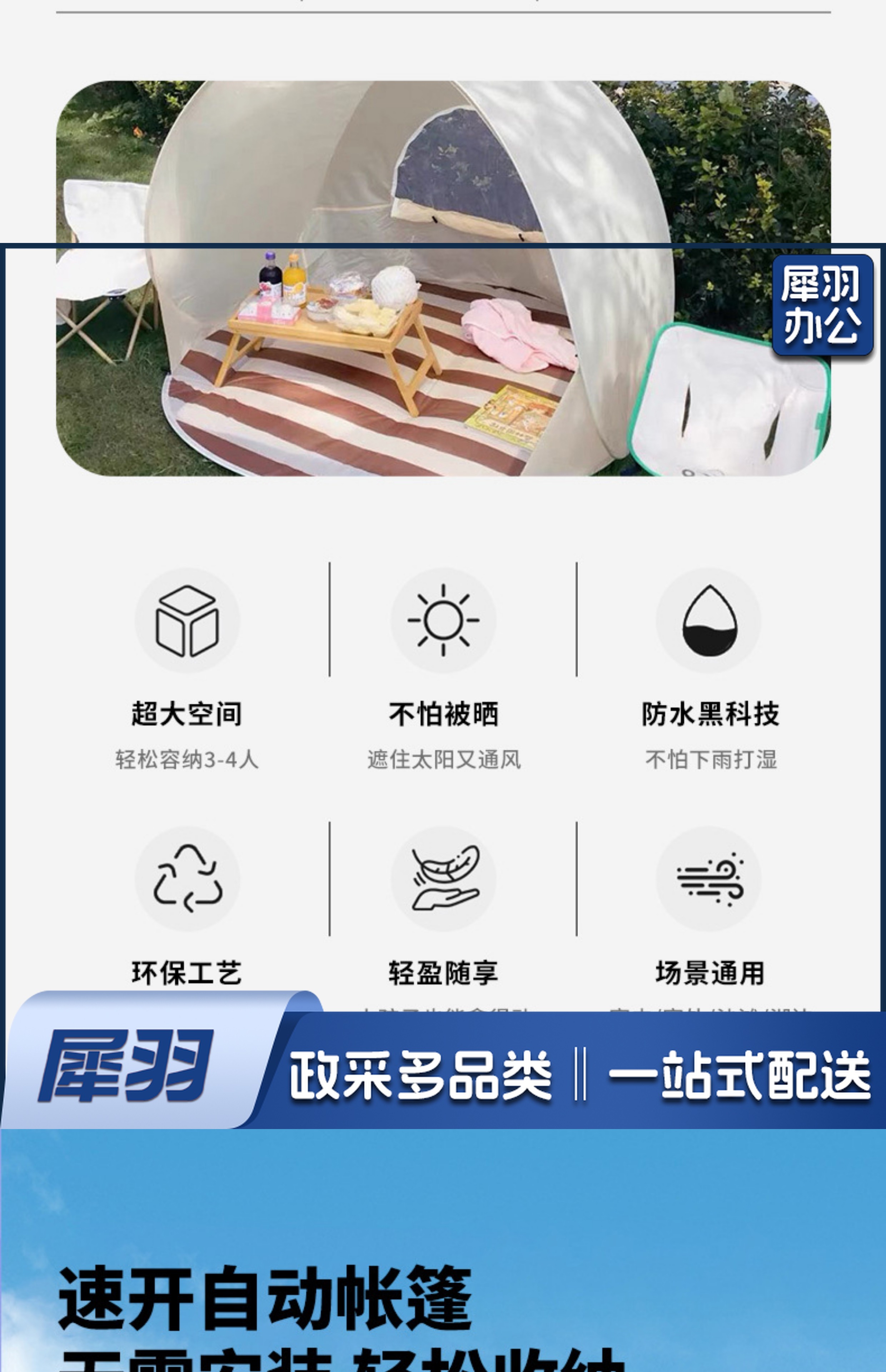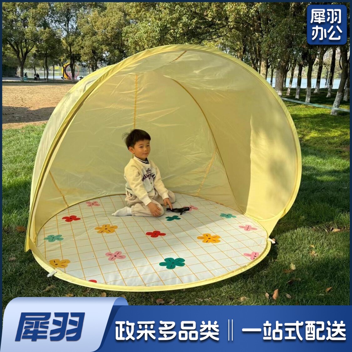 屋露营帐篷装备沙滩户外游戏一键春游折叠开合儿童防雨便携式防晒(2*3米铝膜黄格2.5mm厚)