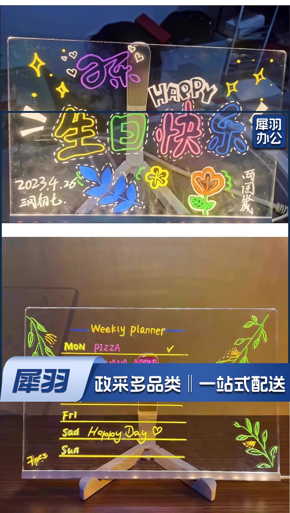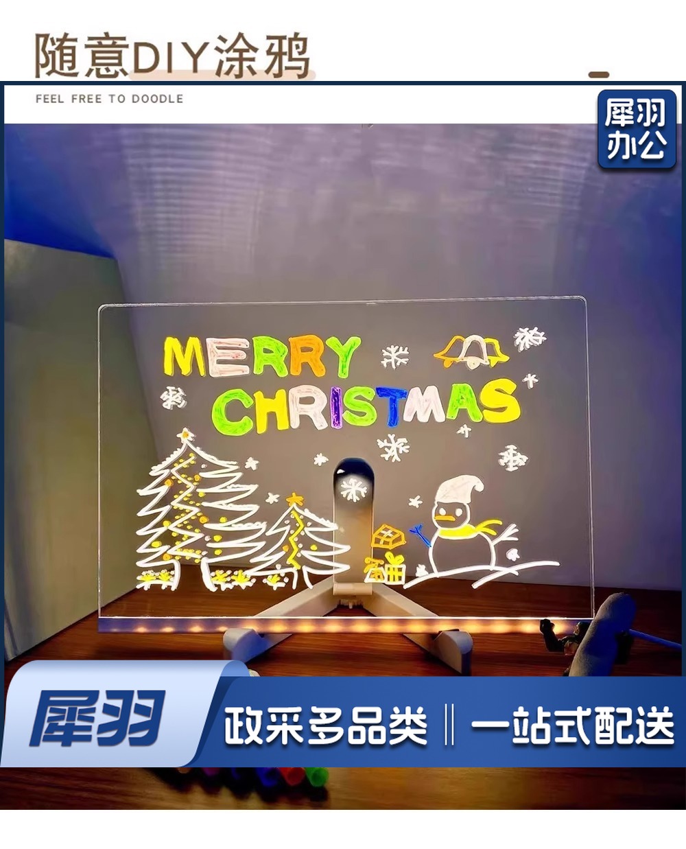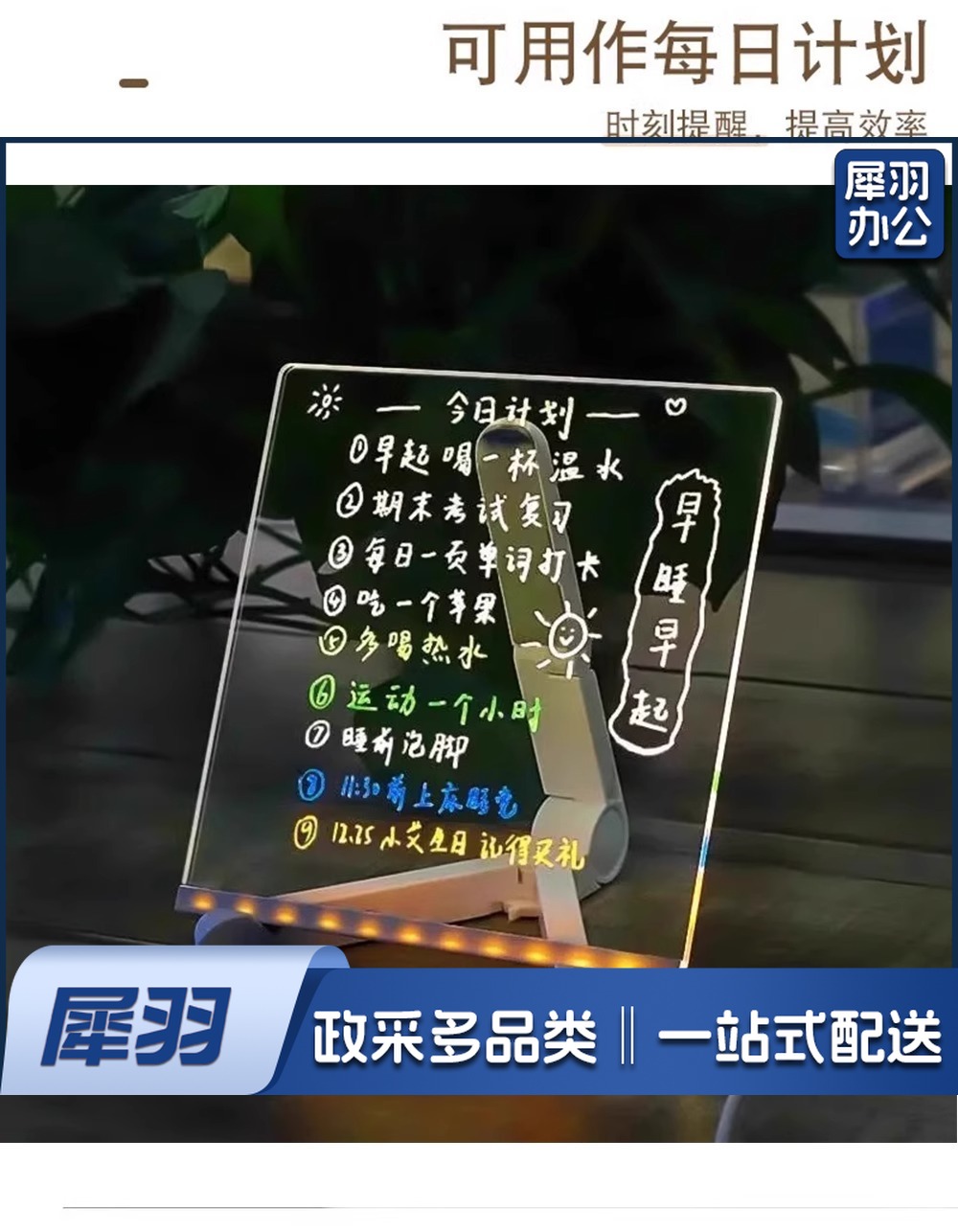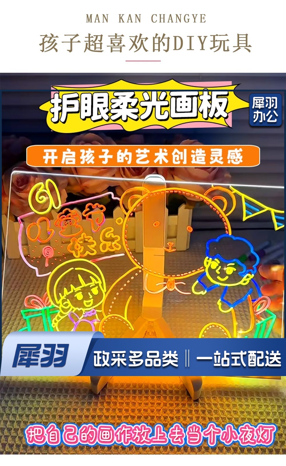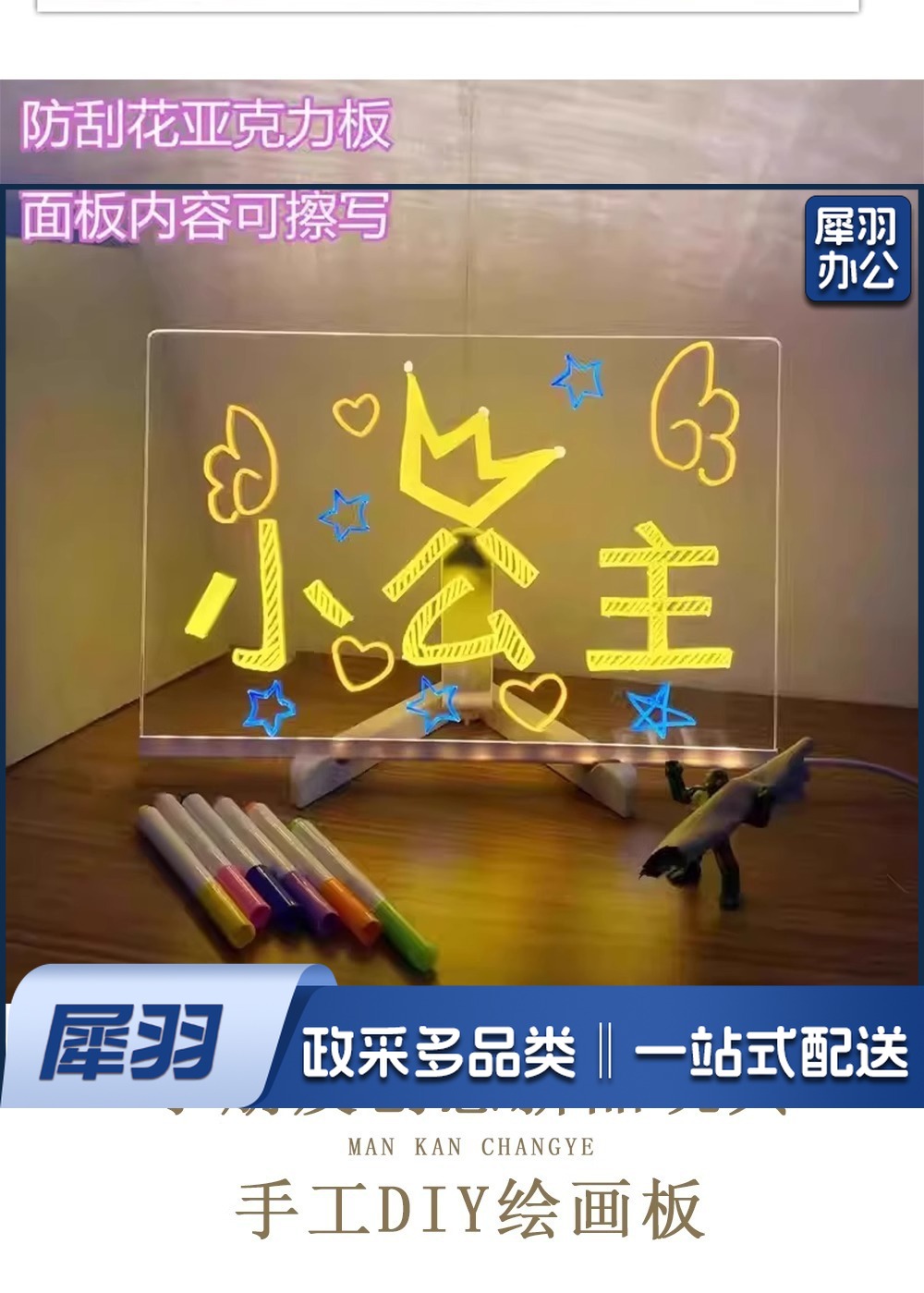 儿童发光画板ubs充电透明亚克力手写板男孩女孩DIY益智玩具留言板(小号 15_15CM-【全套工具】+随机一个素描本)