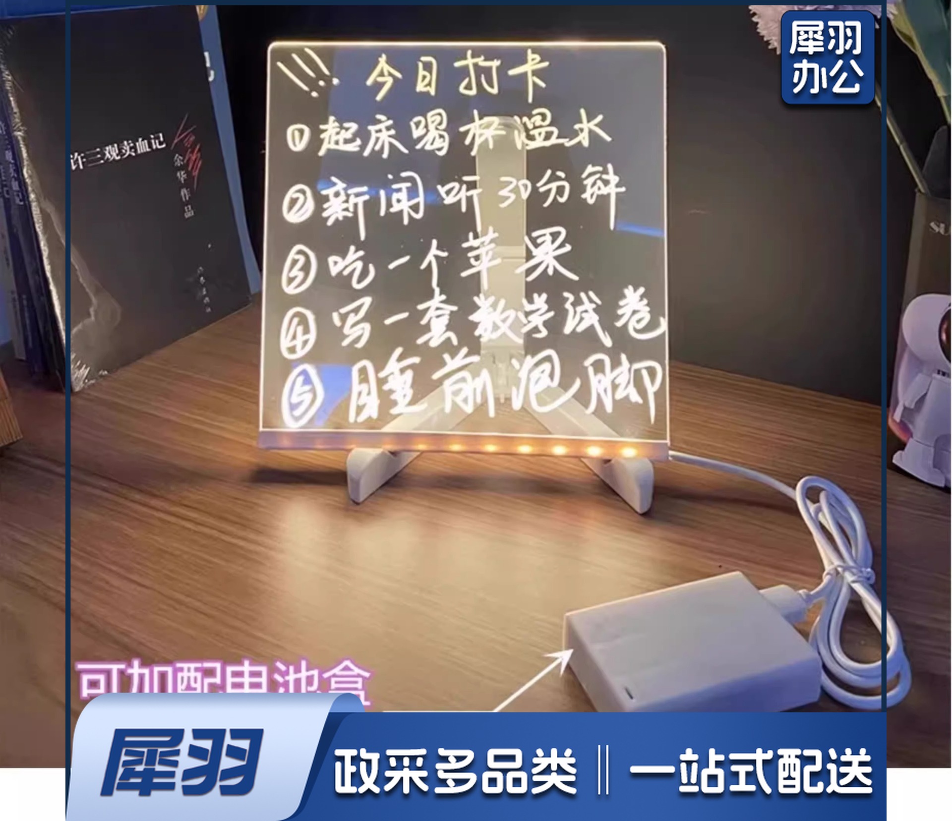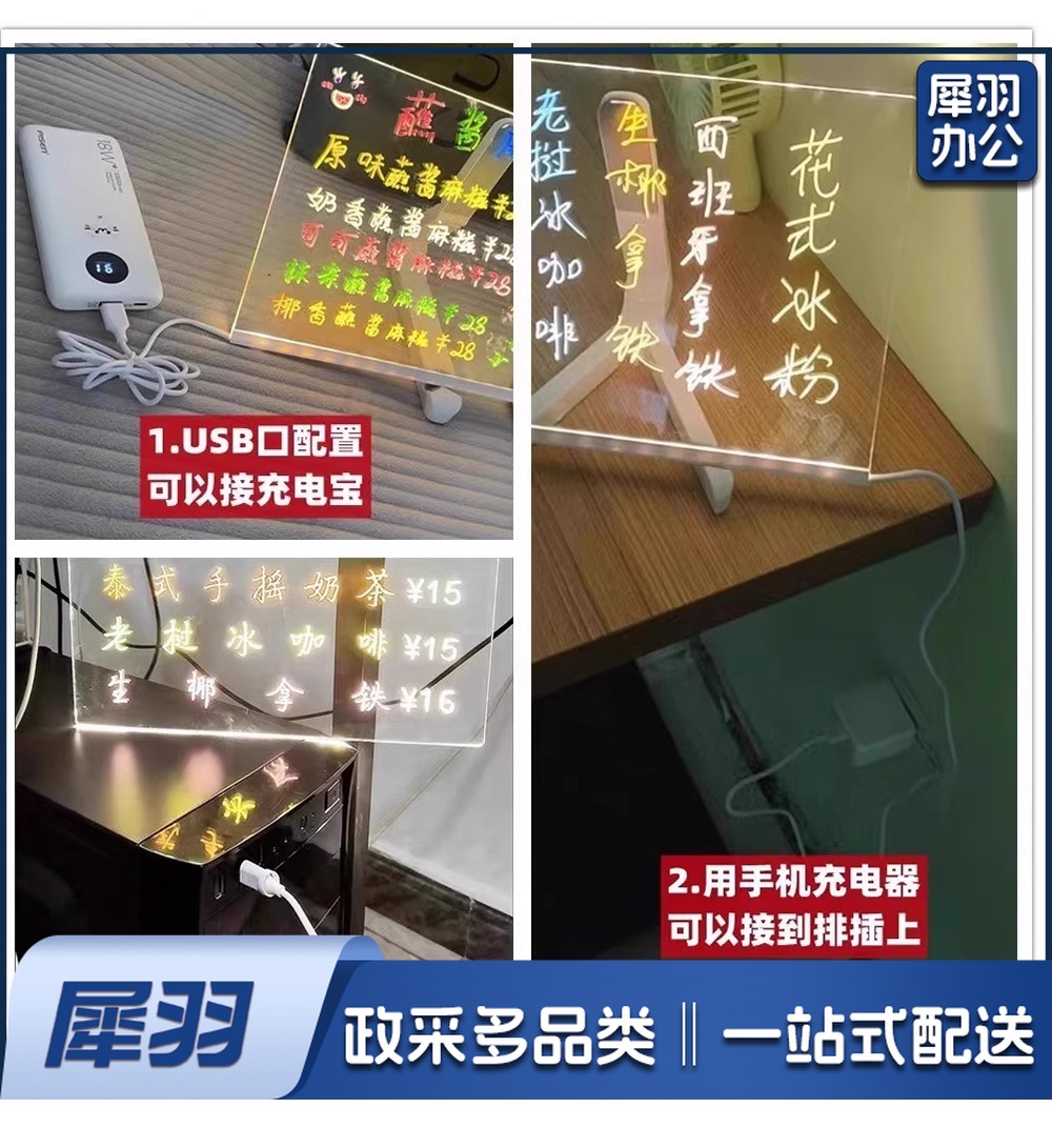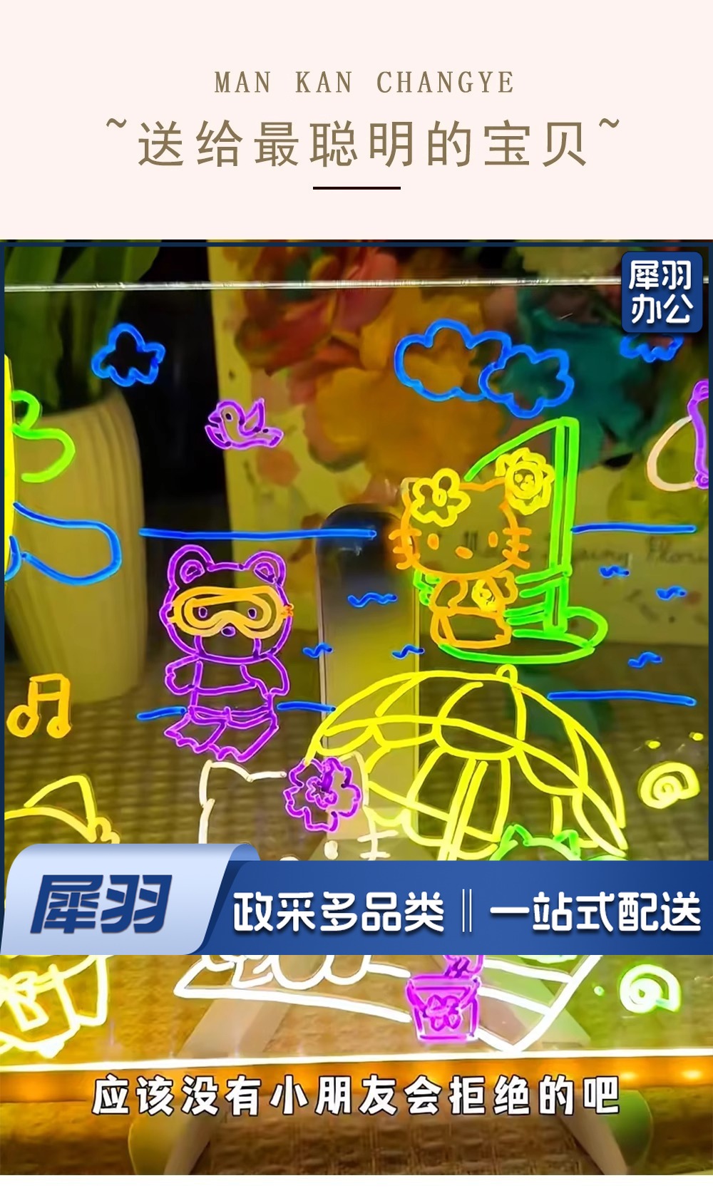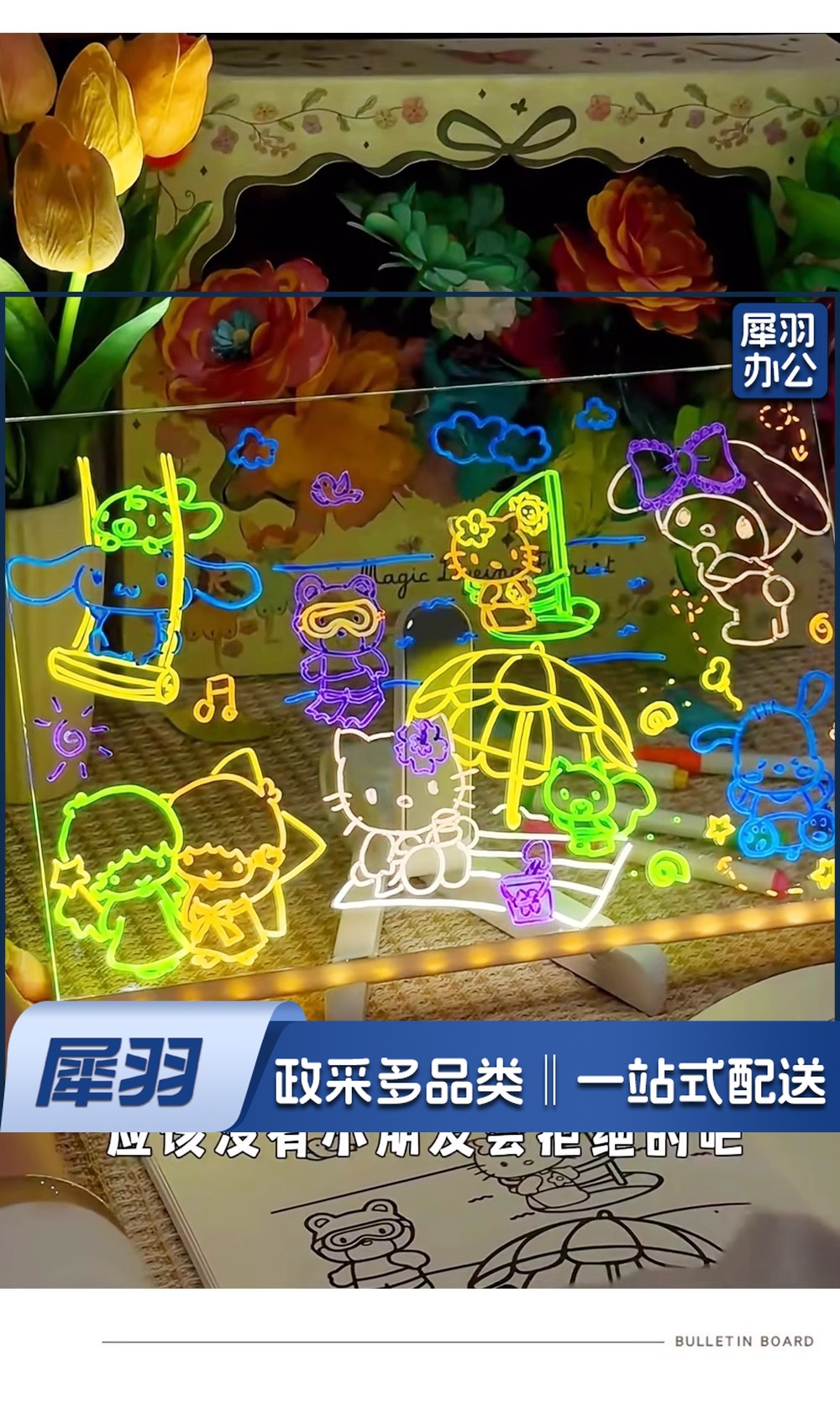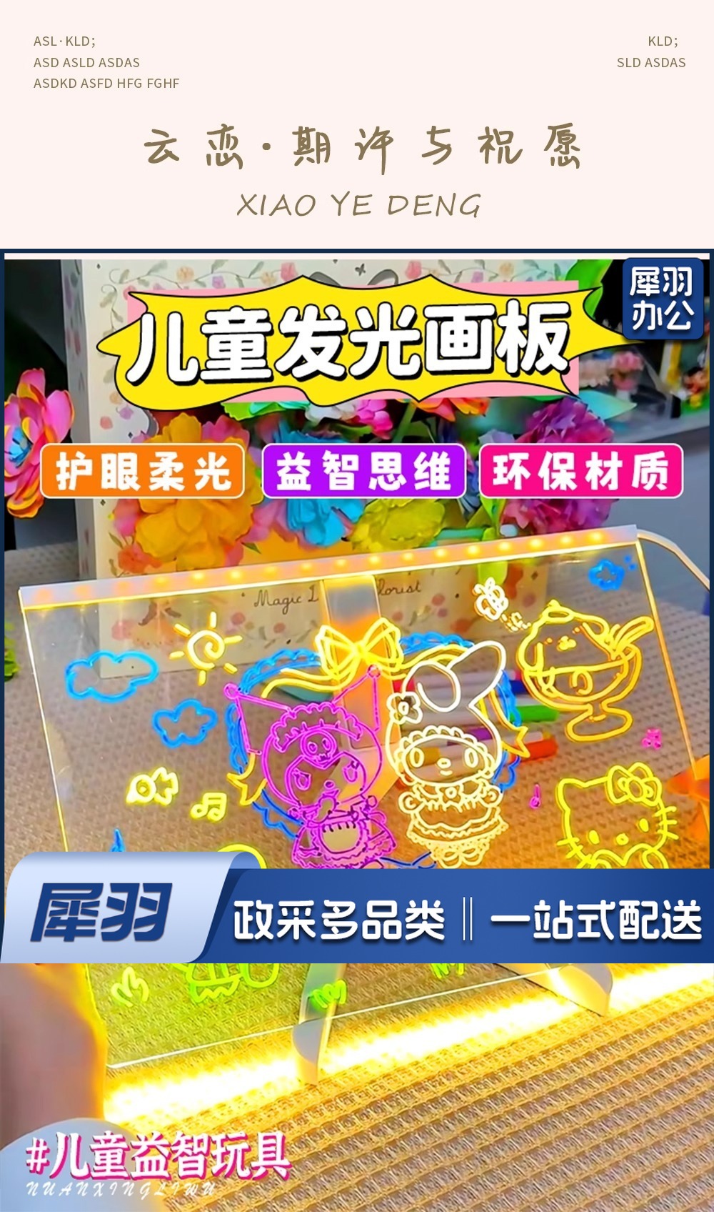 儿童发光画板ubs充电透明亚克力手写板男孩女孩DIY益智玩具留言板(小号 15_15CM-【全套工具】+随机一个素描本)