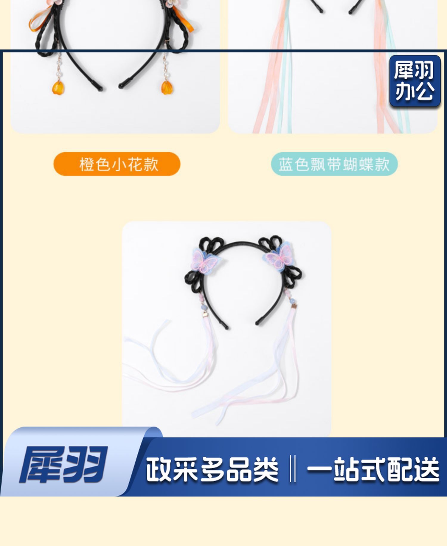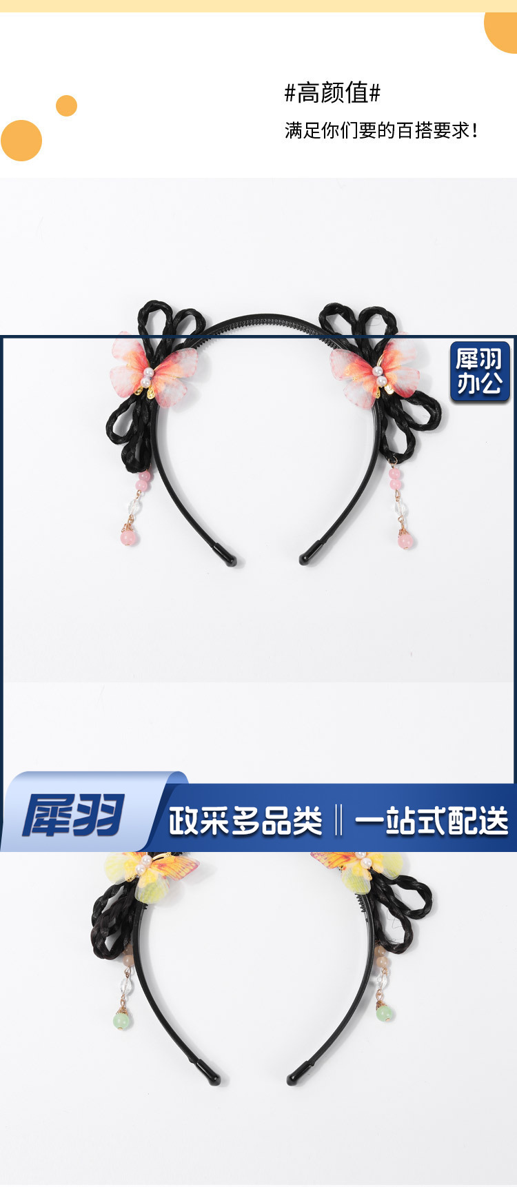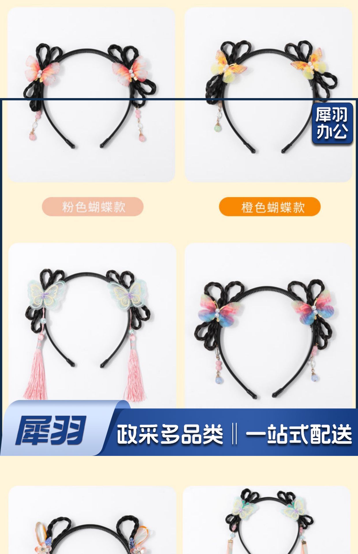 古风假发辫蝴蝶结发箍女童流苏发饰汉服头箍儿童古装拍照头饰配饰(古风汉服橙色蝴蝶发箍)