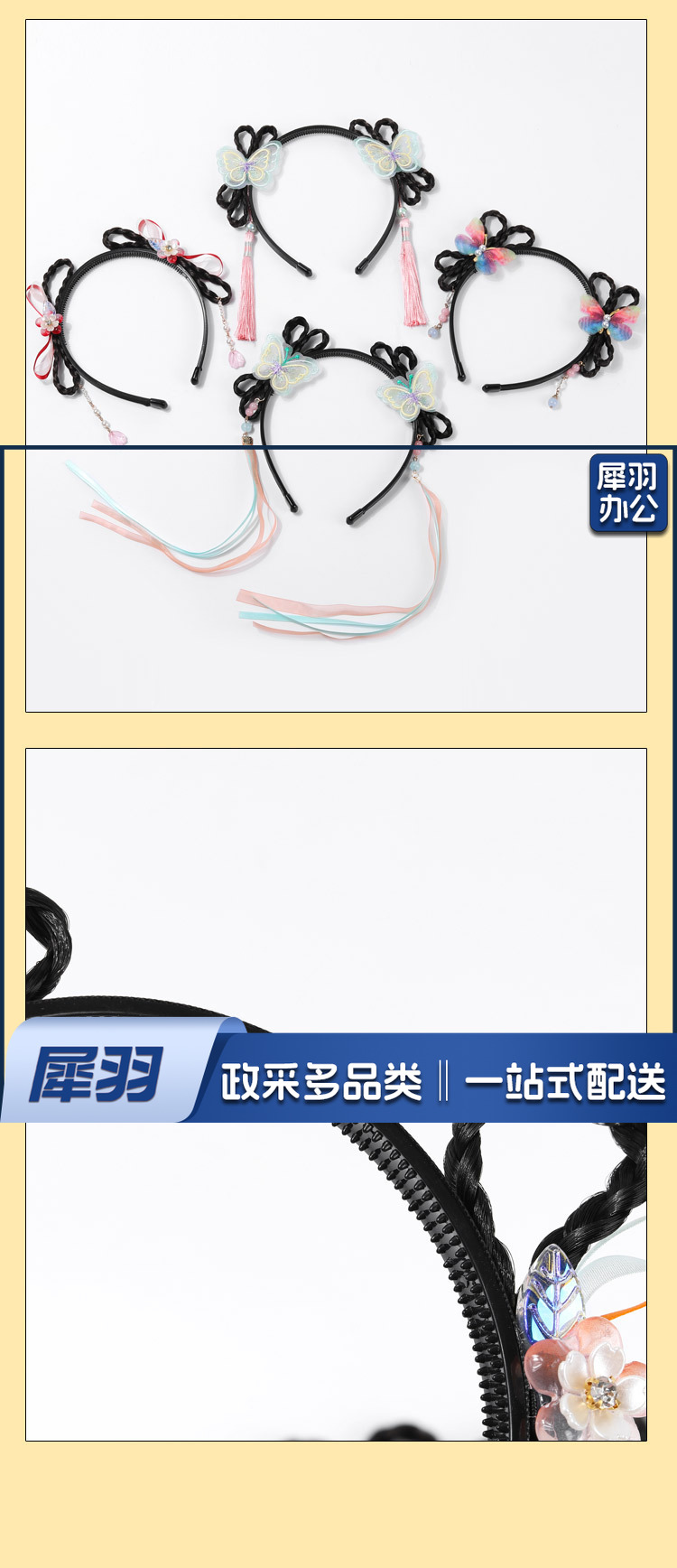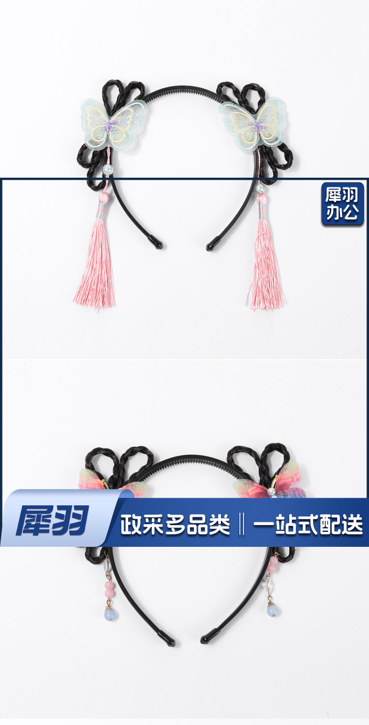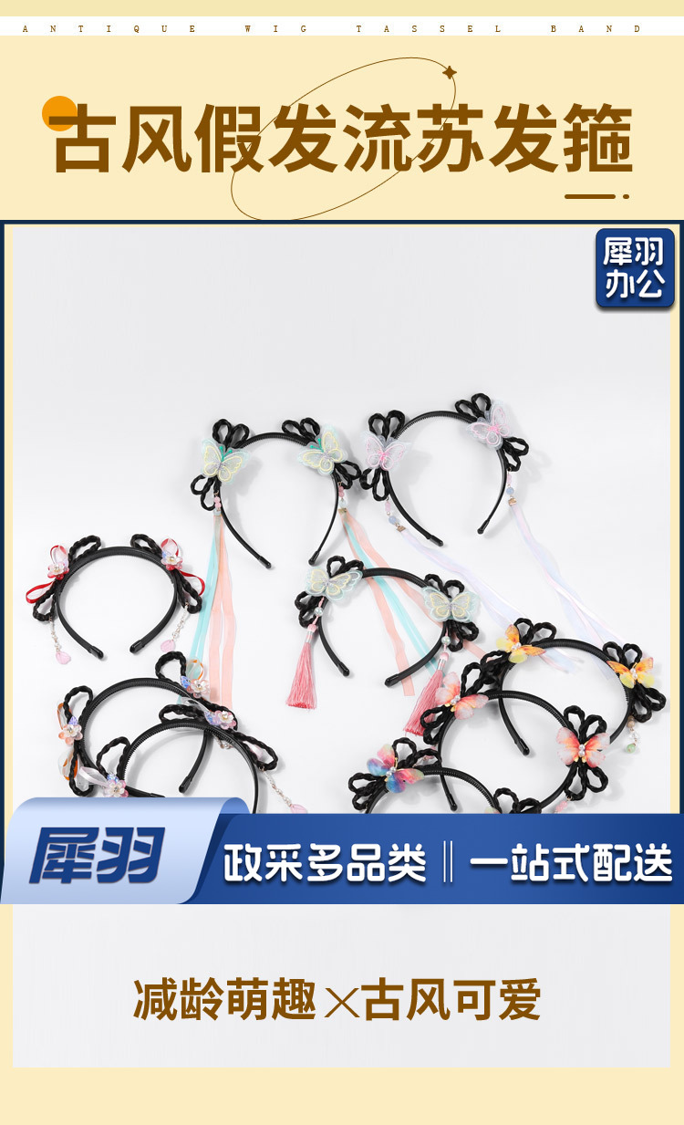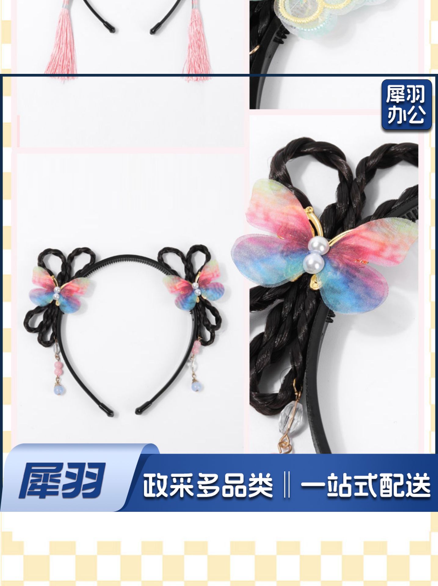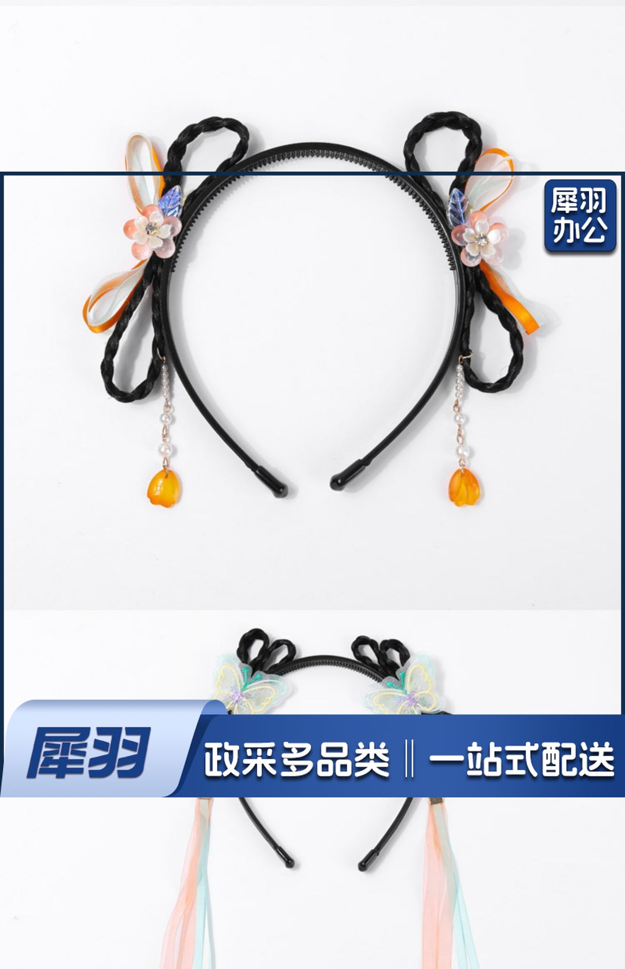古风假发辫蝴蝶结发箍女童流苏发饰汉服头箍儿童古装拍照头饰配饰