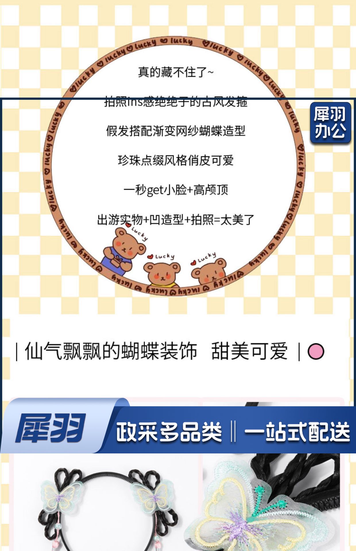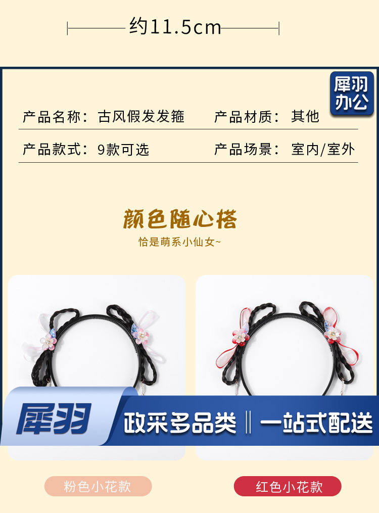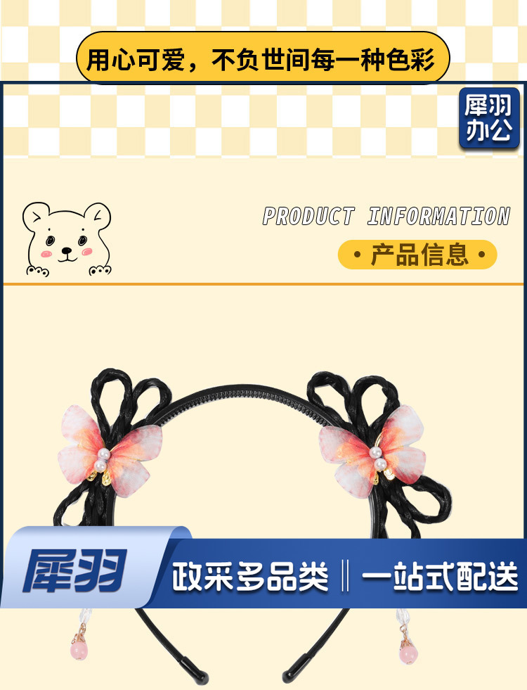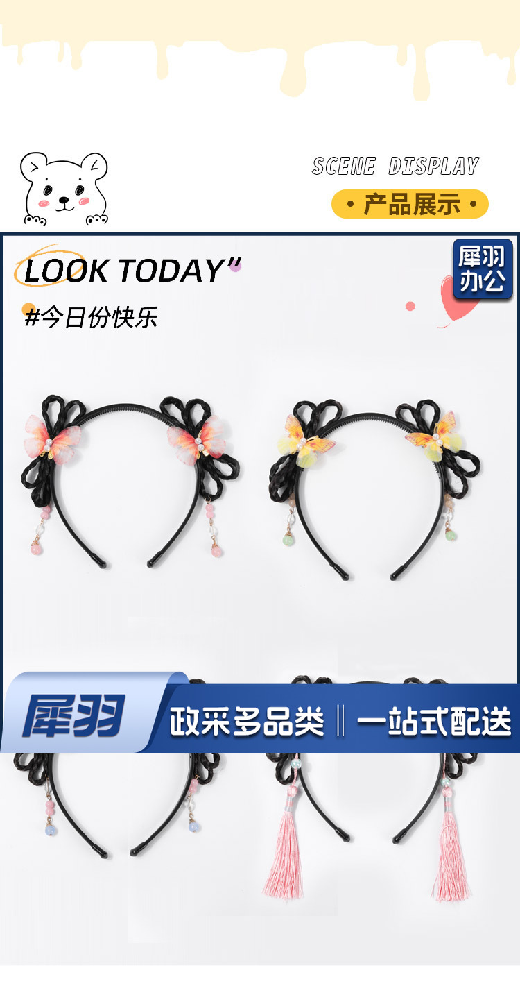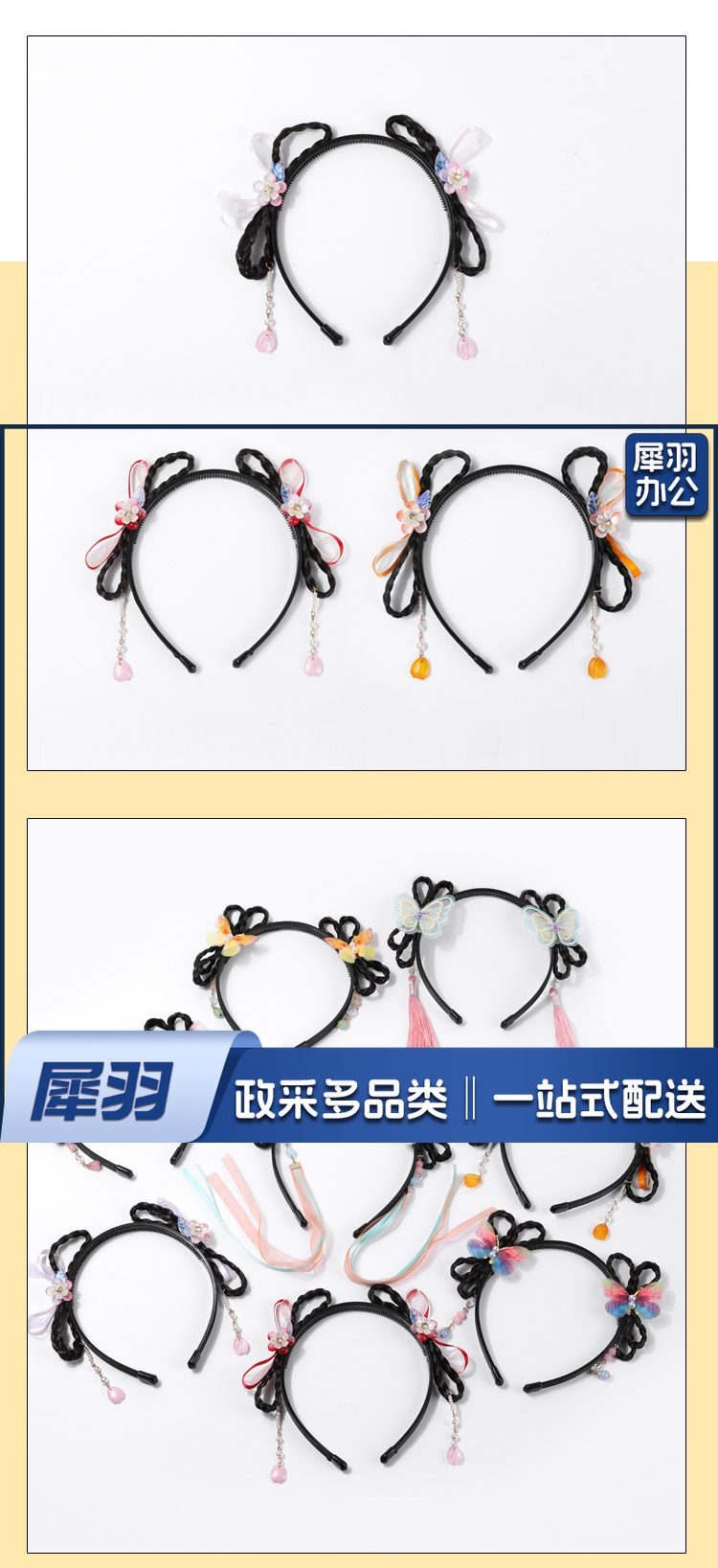 古风假发辫蝴蝶结发箍女童流苏发饰汉服头箍儿童古装拍照头饰配饰
