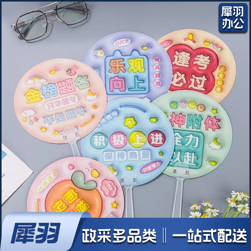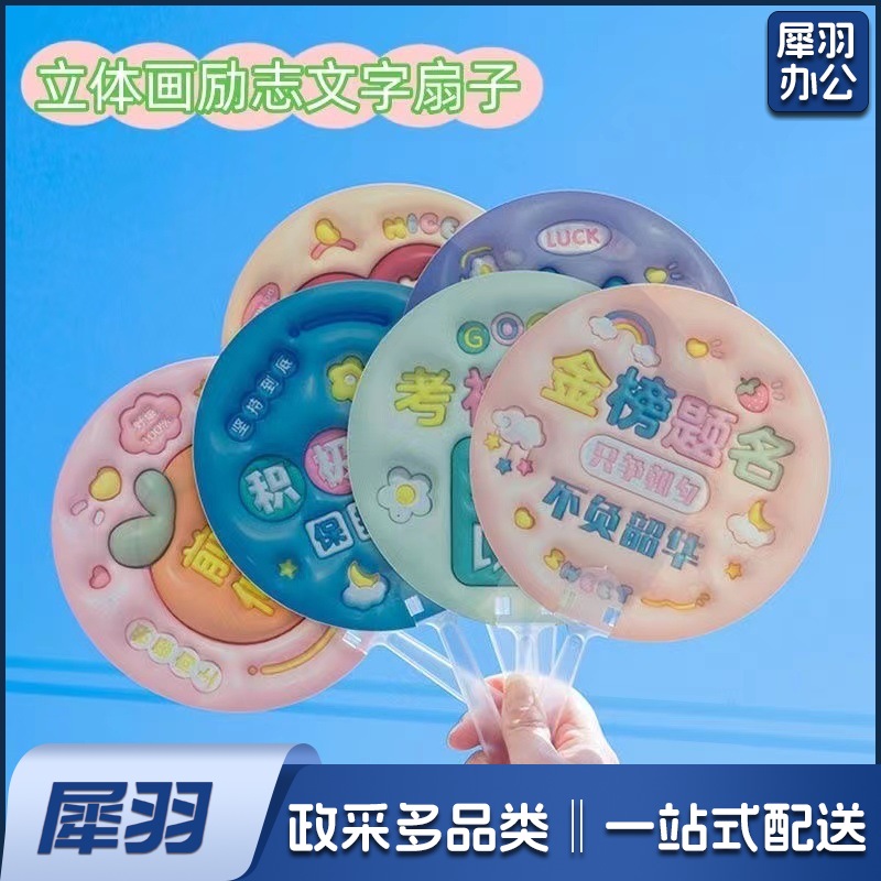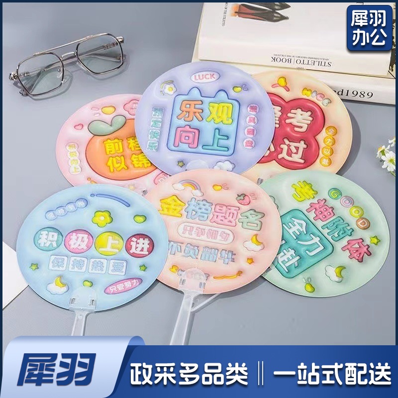 3D立体画励志文字扇子创意膨胀小圆扇学生金榜题名毕业奖品手持扇(款式任选)