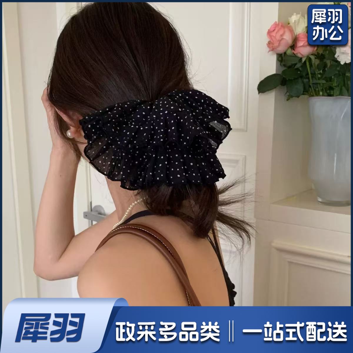 韩系波点大肠发圈女高级感荷叶边头绳超大号百搭温柔爱心纽扣头饰(黑色&波点爱心纽扣裙摆-发圈*约19cm