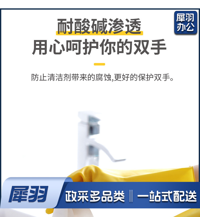 M码 加厚牛筋耐磨乳胶手套 橡胶劳保手套 黄色长款 32cm 1双