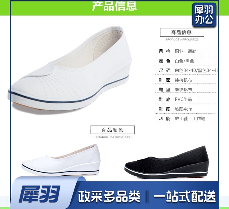 护士鞋白色布鞋坡跟黑色帆布鞋女鞋小白鞋医院美容院工作鞋bxy