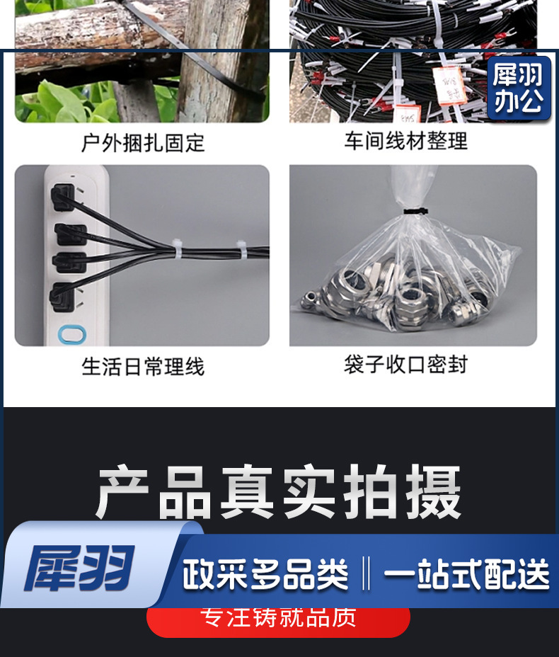 尼龙扎带大中小号黑色白色易拉捆绑带塑料扎带束线带(30cm*100根)