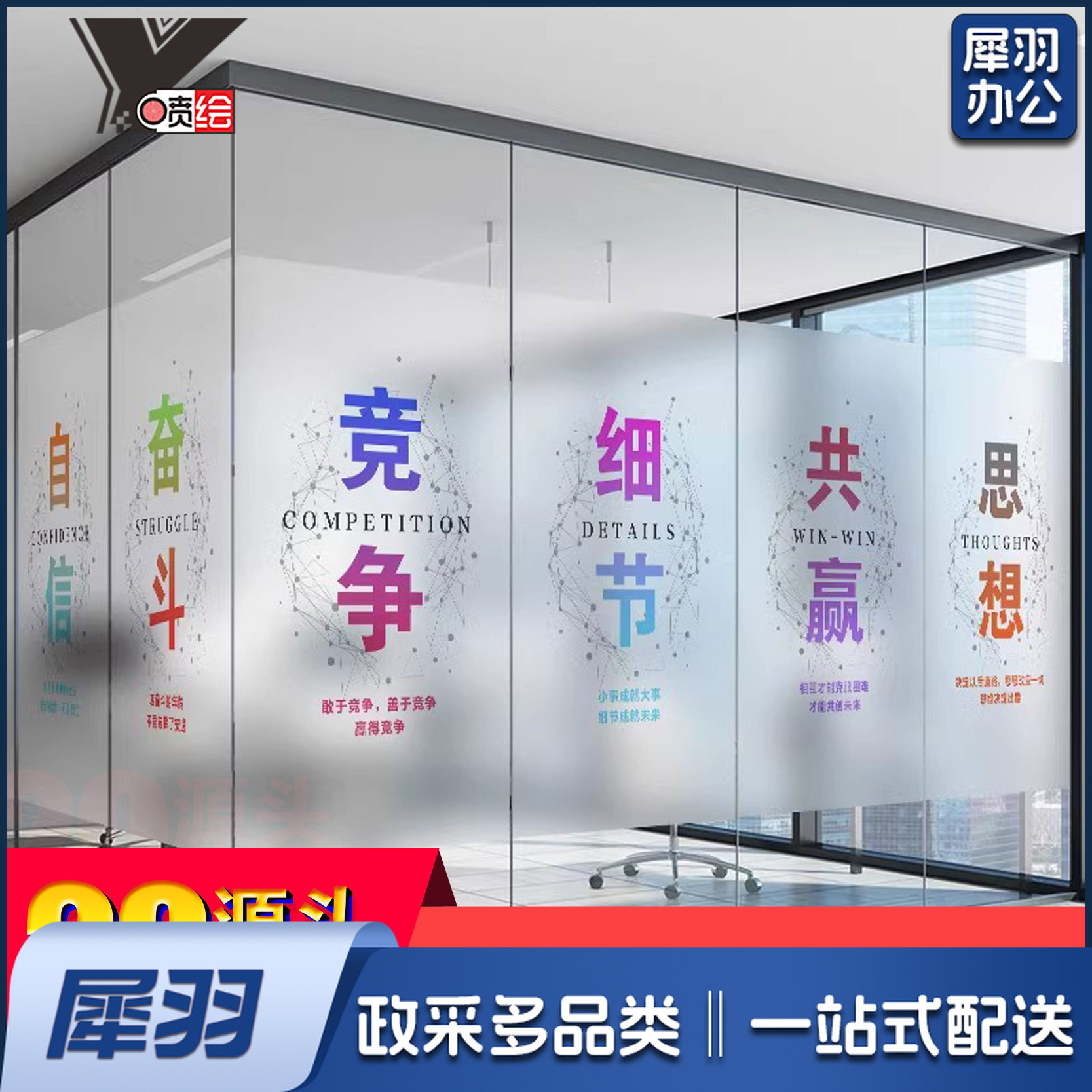玻璃贴纸订做办公室玻璃门防撞条腰线贴膜公司logo镂空磨砂定制(联系客服定做)