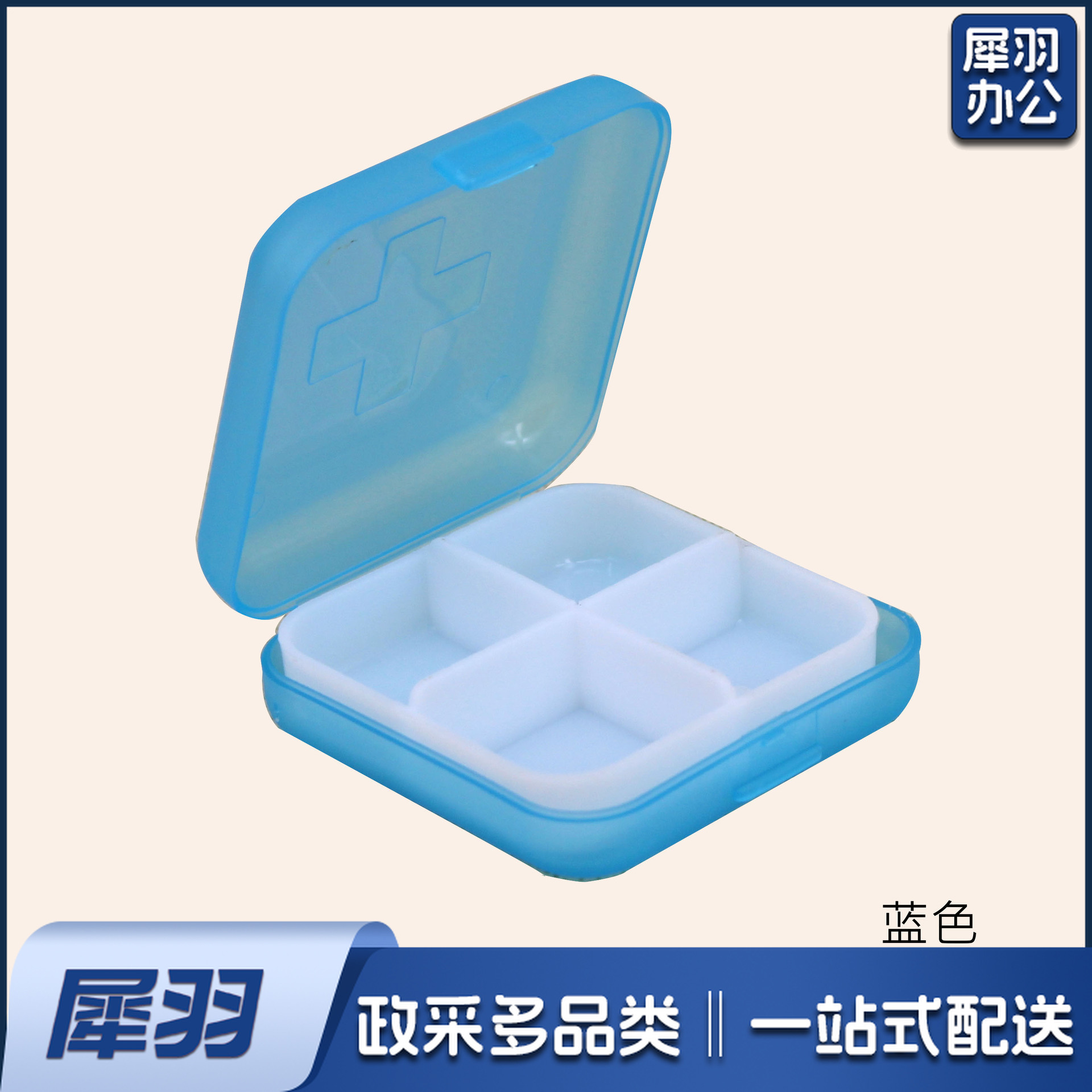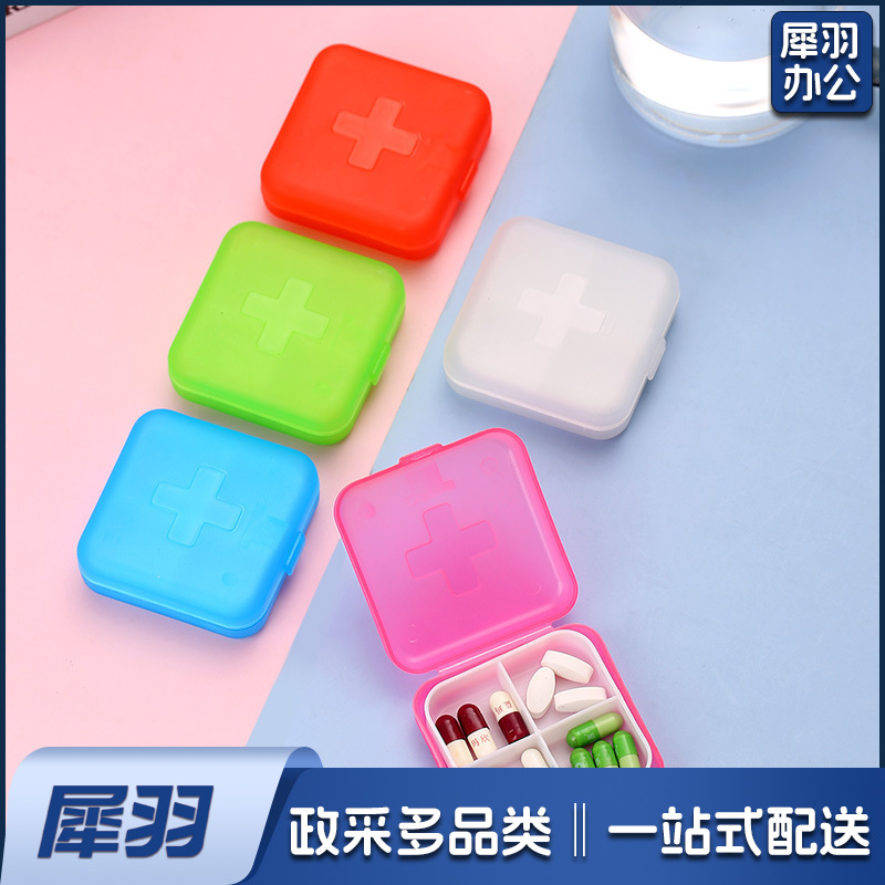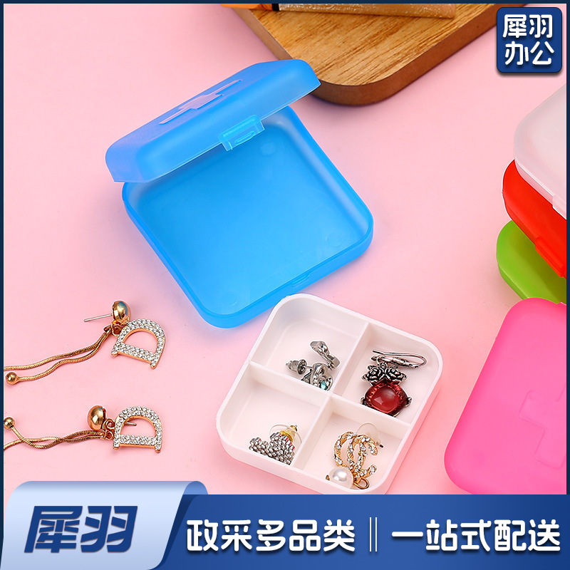 十字四格迷你方形小药盒便携随身塑料盒子分格分藥盒首饰收纳盒6*6*2cm