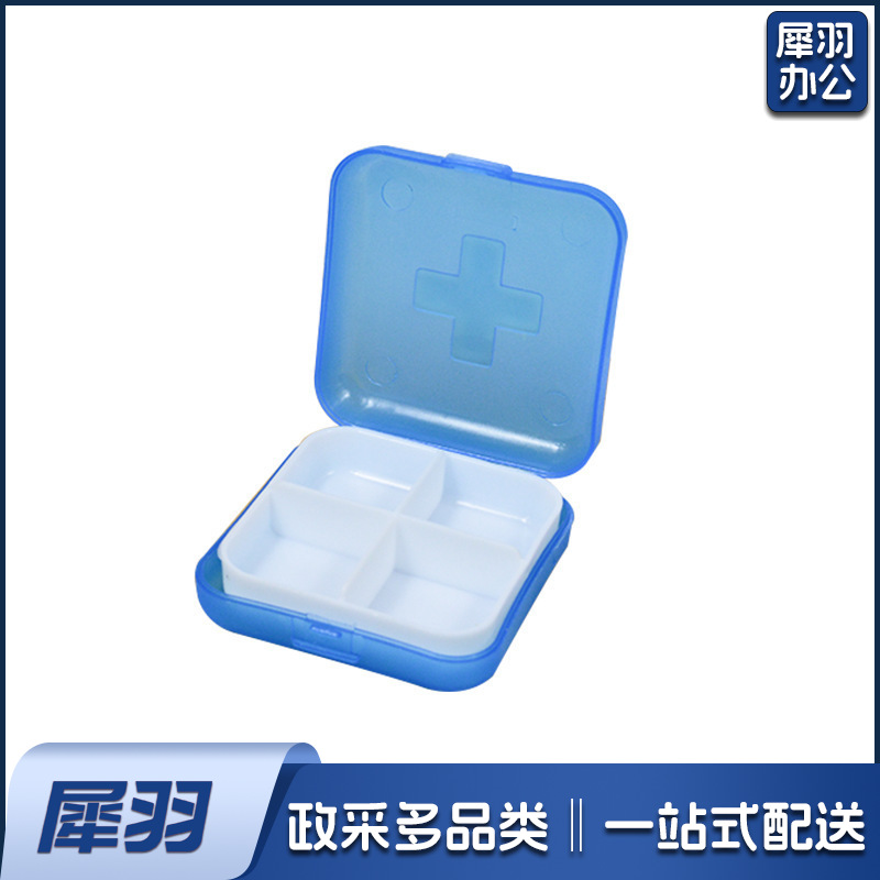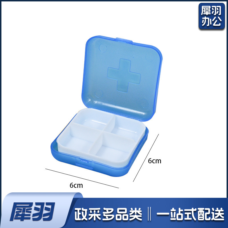 十字四格迷你方形小药盒便携随身塑料盒子分格分藥盒首饰收纳盒6*6*2cm