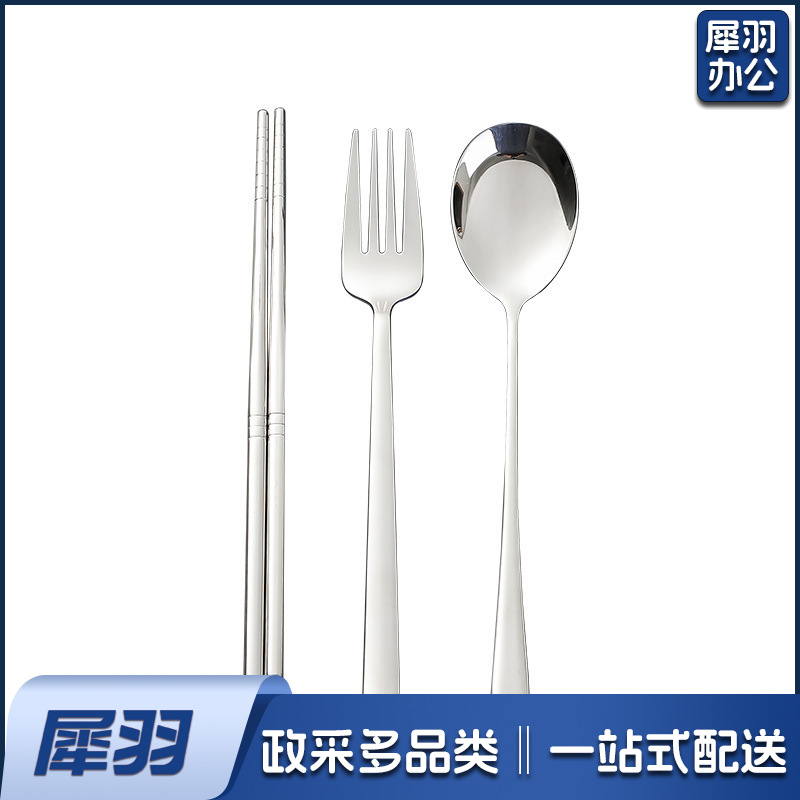 304不锈钢筷子勺子三件套学生旅行韩式叉子便携餐具套装可印logo201蝴蝶勺叉筷+抽拉盒【蓝】