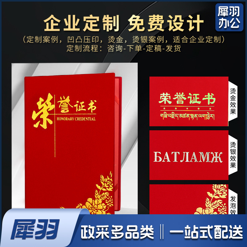 高档荣誉证书 经典A 4员工获奖颁奖证书奖状外壳封面8K 皮面荣誉 送内页
