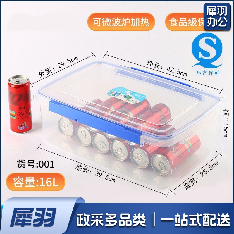 pp食品级加厚手提大号保鲜盒 塑料 透明长方形冰箱密封收纳盒带盖(手提款1852【42*29*24】)2个起拍