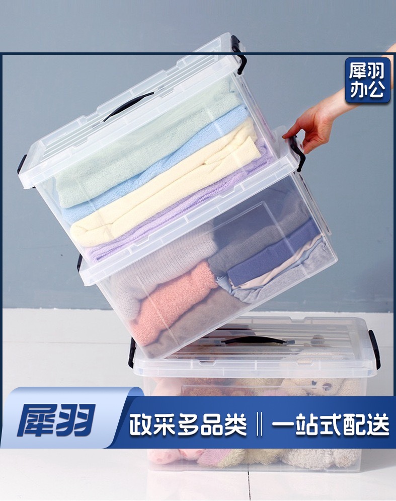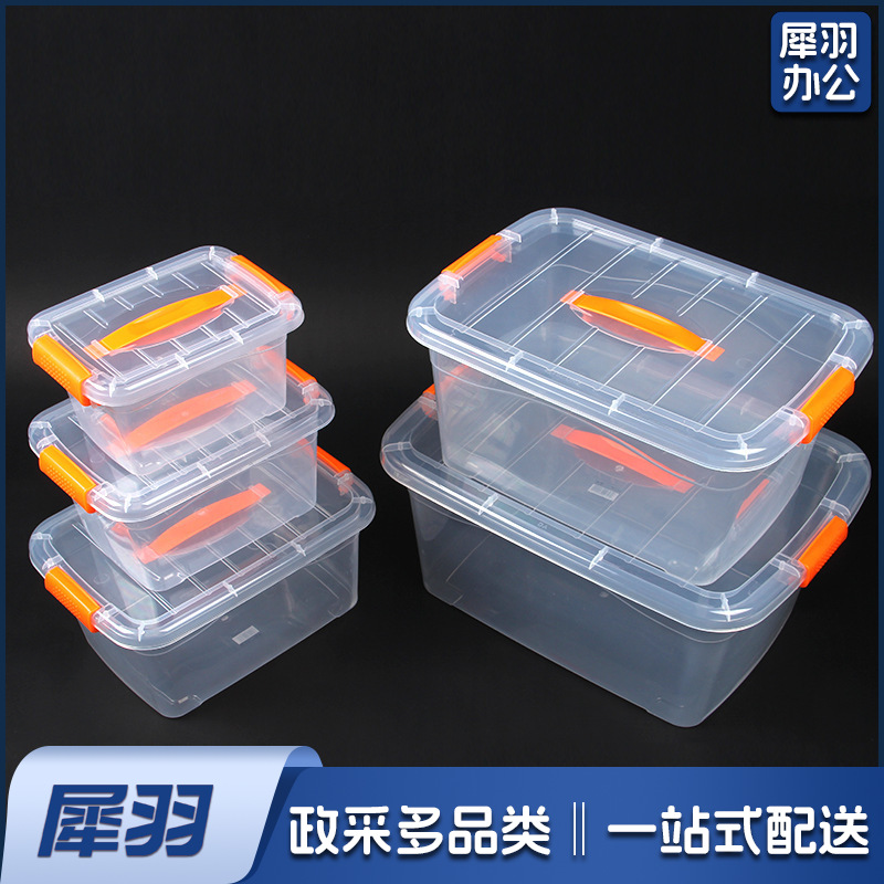 pp食品级加厚手提大号保鲜盒 塑料 透明长方形冰箱密封收纳盒带盖(手提款1857【64*44*39】)2个起拍