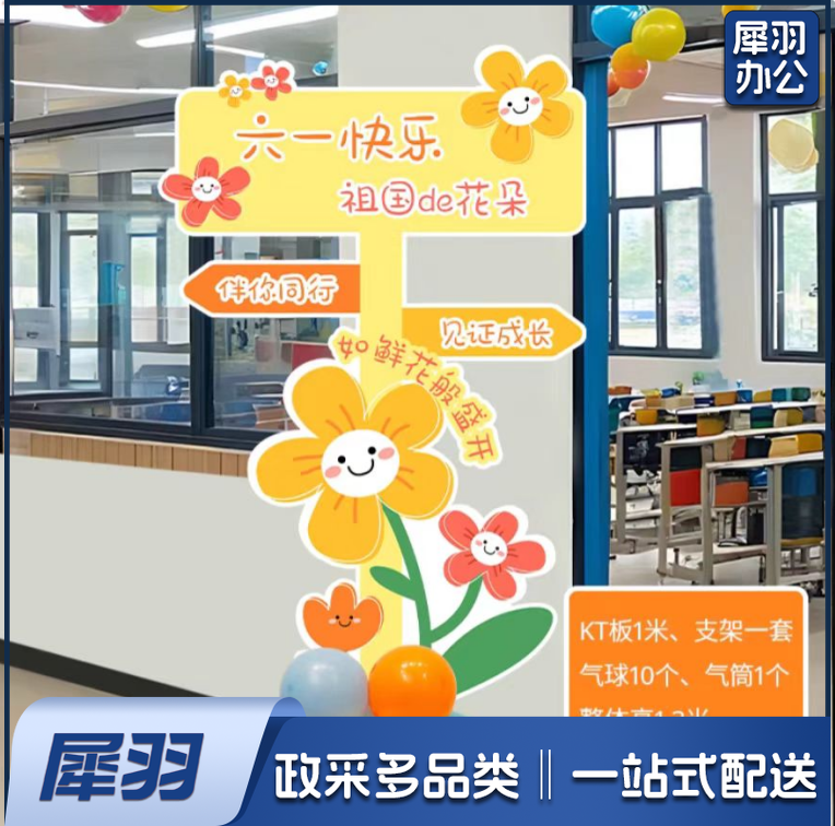 六一儿童节指引牌装饰学校幼儿园教室门口场景布置kt板立柱气球