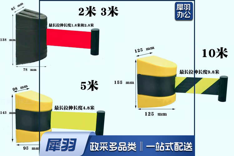 不锈钢强磁挂壁式隔离带2米3米5米10米靠墙一米线磁铁磁吸式伸缩 吸磁黄黑壳3米线(默认红带)