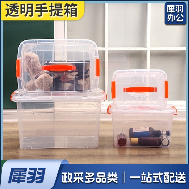 pp食品级加厚手提大号保鲜盒 塑料 透明长方形冰箱密封收纳盒带盖(高透明款004:26*18*9)2个起拍