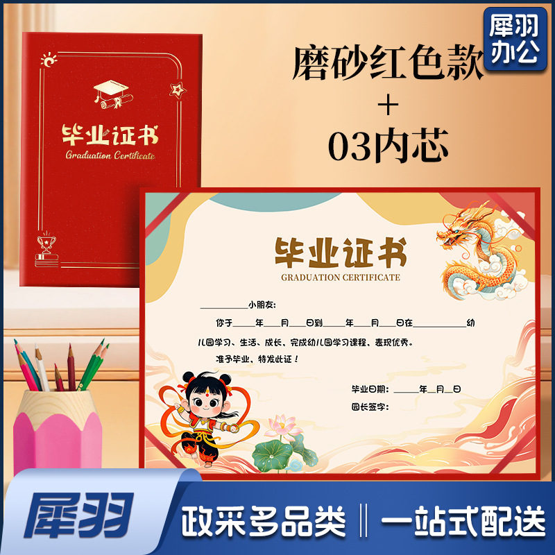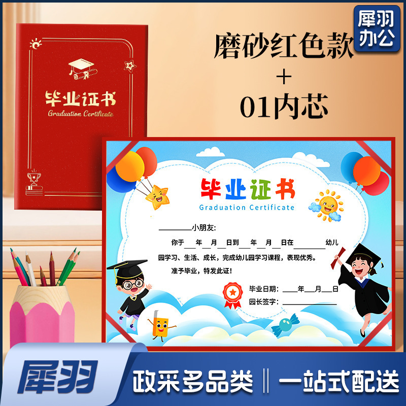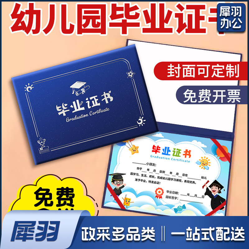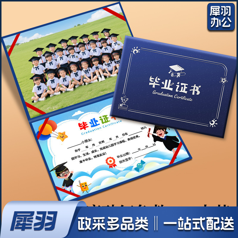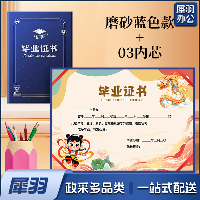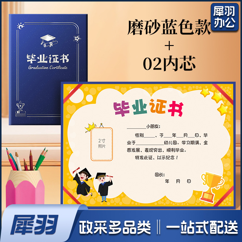 幼儿园毕业证书离园纪念册外壳大班小朋友证书奖状外壳(《12K竖版》蓝色磨砂丨01款A 4内页)内页可选