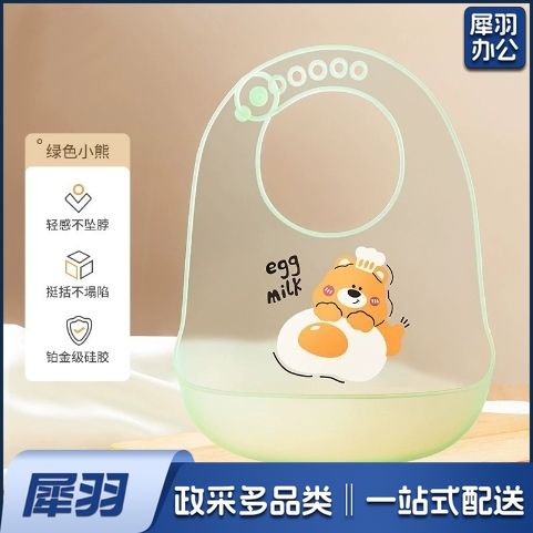 宝宝吃饭围兜防水硅胶饭兜儿童柔软喂辅食围嘴婴儿防脏喂饭口水兜(黄色-小狮子)