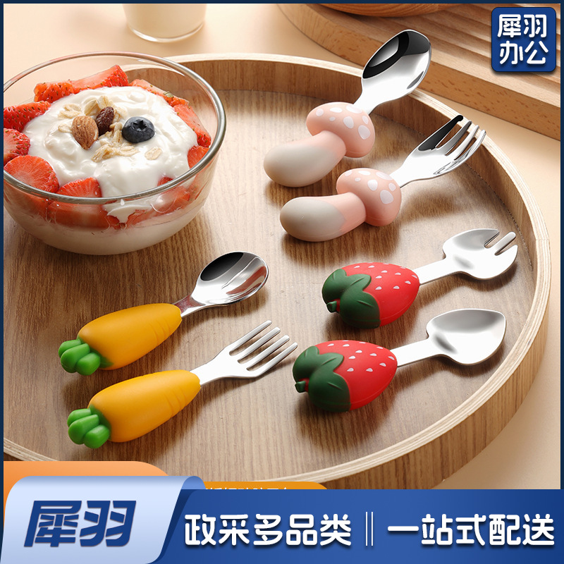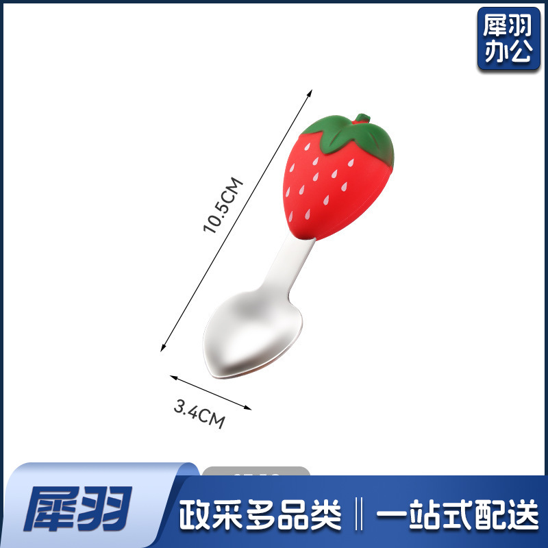 304不锈钢儿童餐具套装硅胶勺子叉子卡通胡萝卜玉米草莓宝宝餐具 (单只勺)