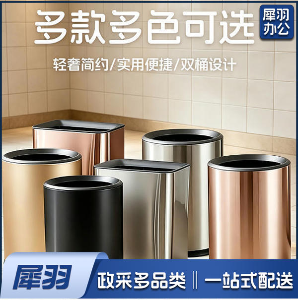 酒店房间垃圾桶宾馆商用圆形加厚双层ktv电竞房台球室客房专用/12L长方形-香槟金(加厚内外双桶)