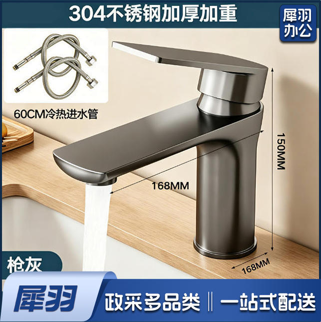 水龙头不锈钢水龙头洗脸盆洗手池冷热水家用卫生间洗漱台浴室柜面盆龙头/枪灰【冷热】龙头+60cm进水管