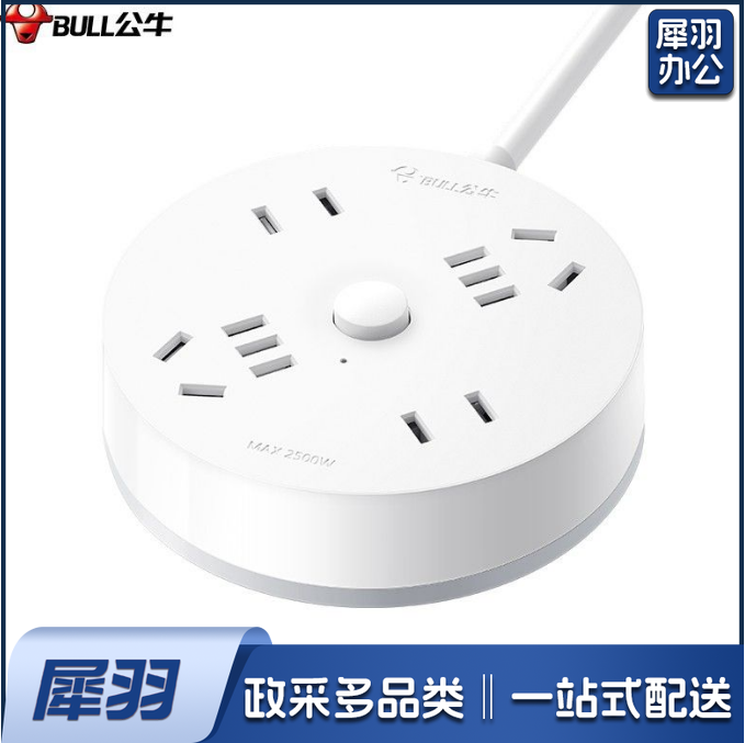 公牛(BULL)GN-R2220 插座/插线板/插排/排插/拖线板 圆形插座4位总控 全长1m