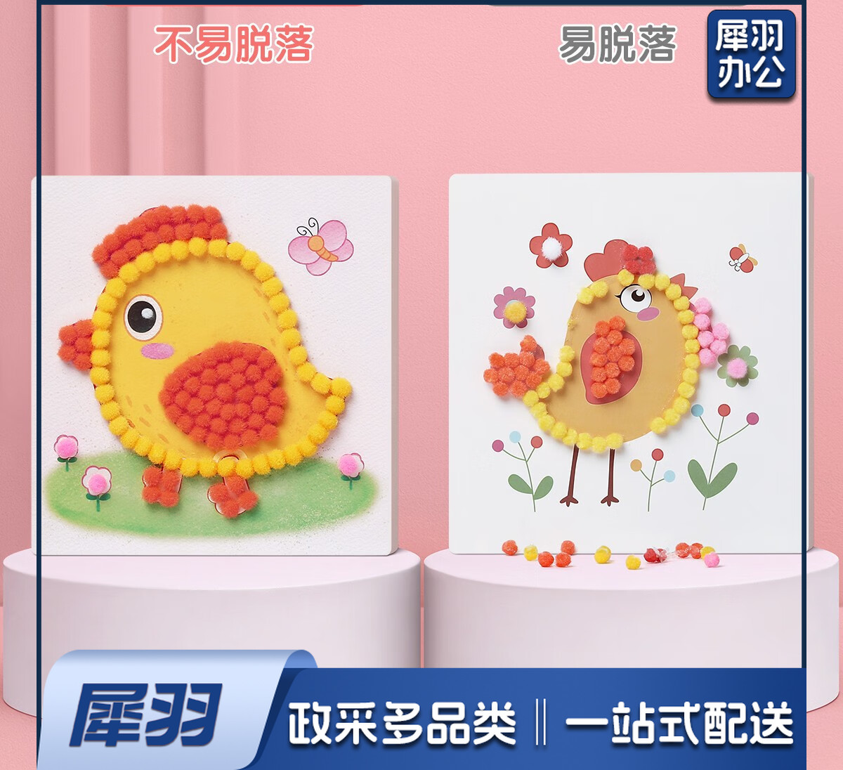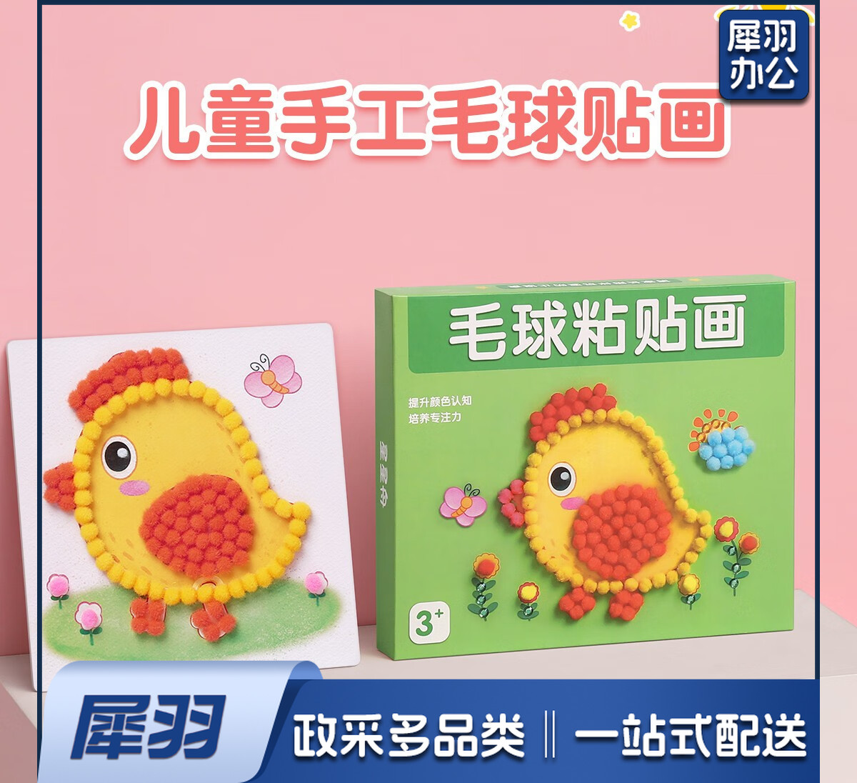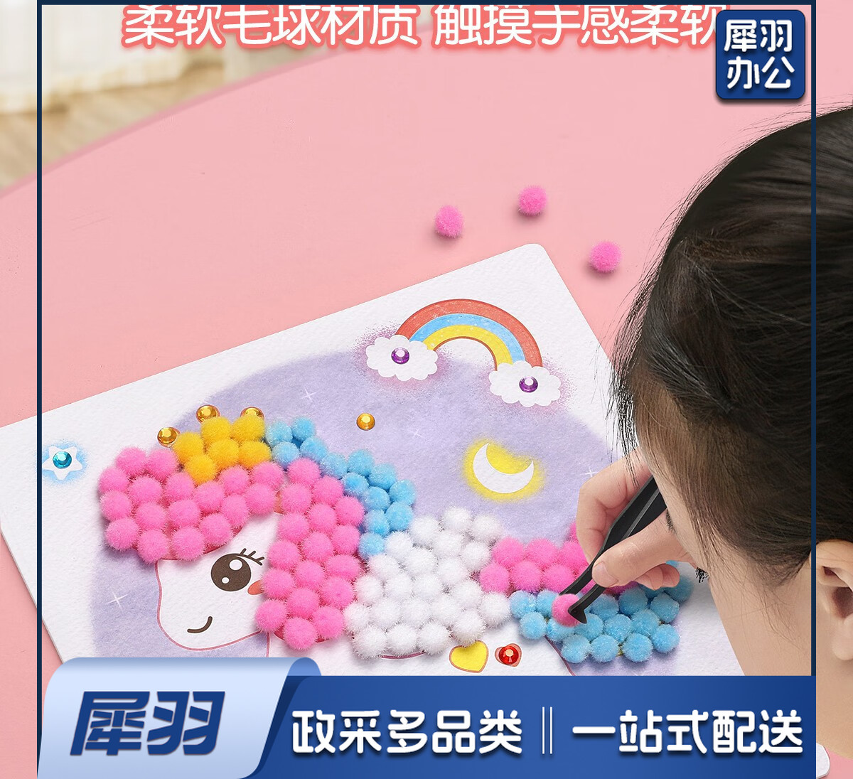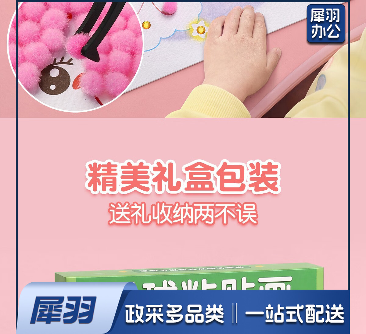 儿童手工diy制作材料包女孩玩具毛球粘贴画幼儿园生日礼物 【基础款】毛球礼盒装