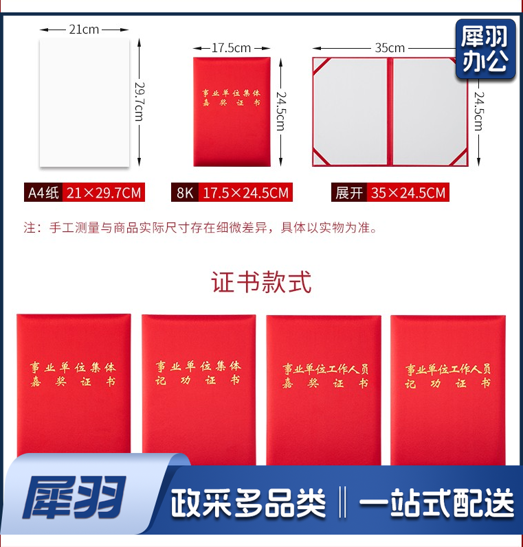 高档绸面事业单位工作人员嘉奖证书 8K 定制前咨询客服