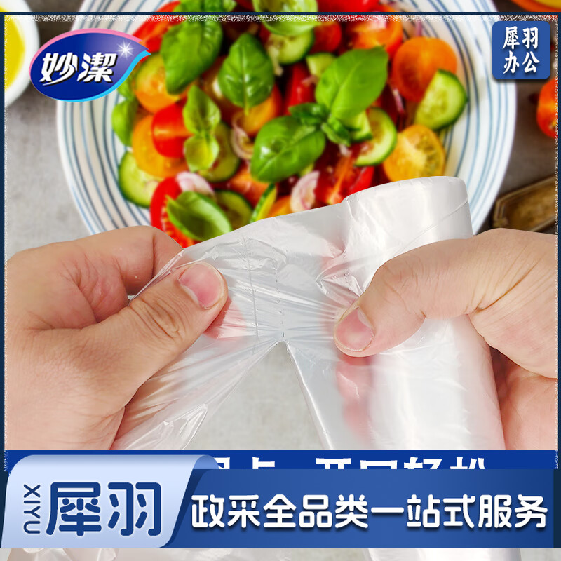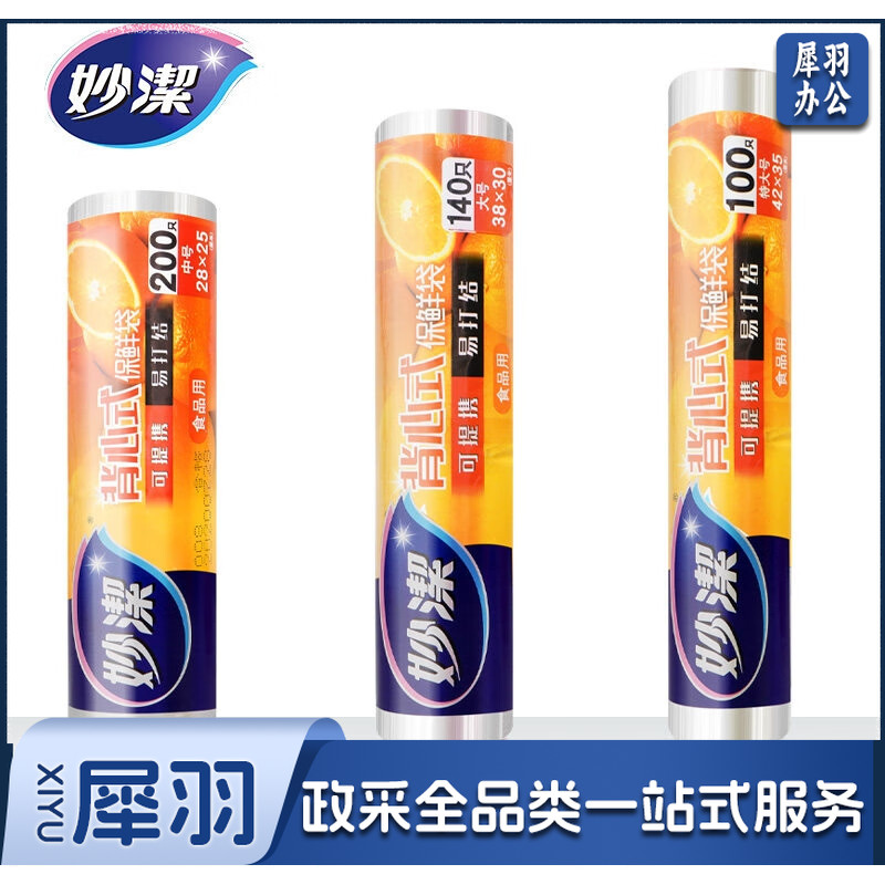 妙洁 背心式保鲜袋中特大号家用食品级pe手提式食品袋加厚冰箱专用 特大号2卷共200只