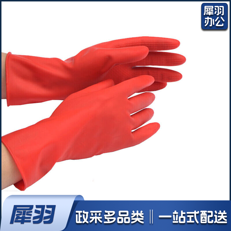 乳胶光里手套 洗衣洗碗手套 家务橡胶手套 清洁胶皮手套(45款 红色乳胶手套) 大号 8671