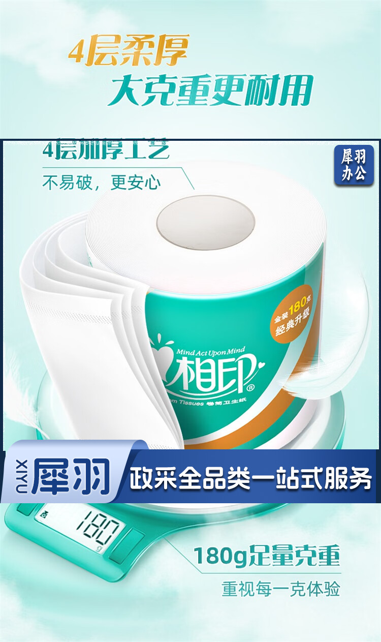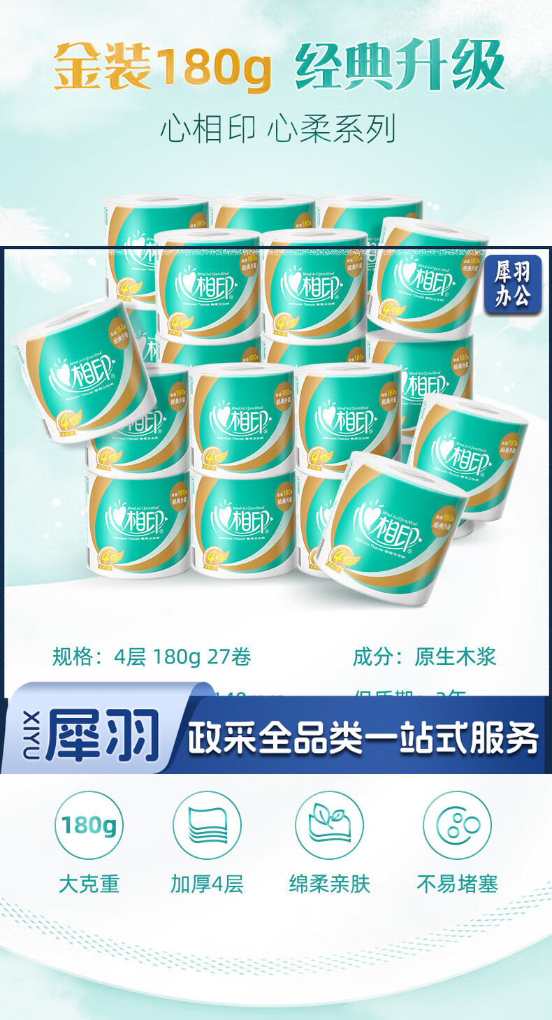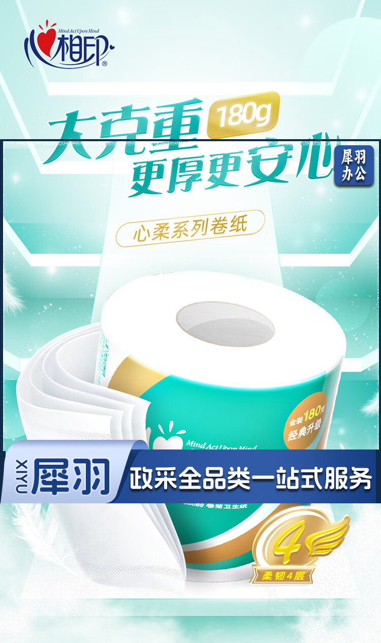 心相印卷纸卫生纸有芯卷筒纸粗卷心柔系列4层加厚纸巾家庭装整箱 4层/180g/10卷 原生木浆