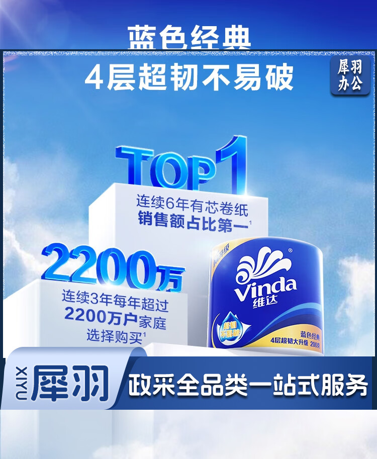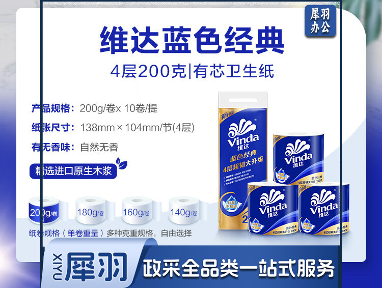 维达(Vinda)有芯卷纸 蓝色经典厚韧大分量 卫生纸厕纸 卷筒纸