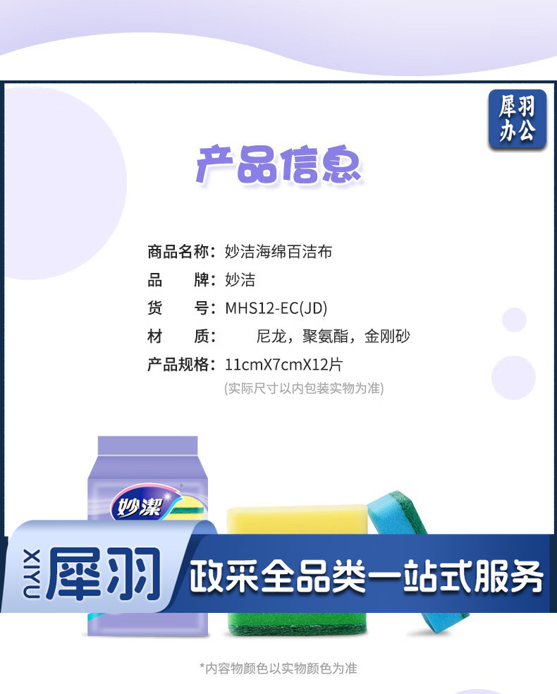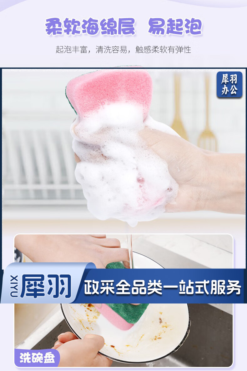 妙洁海绵百洁布 四色分用去油污抹布厨房洗碗棉