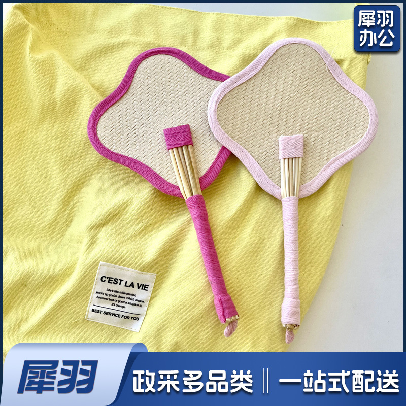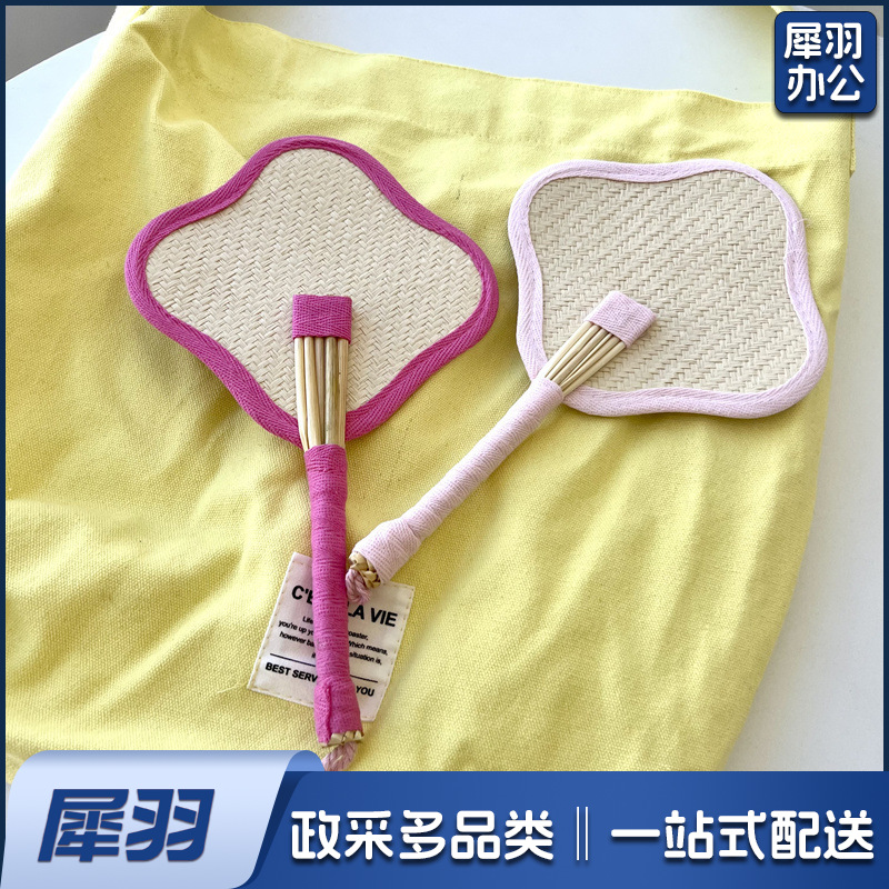 小红书同款夏日草编蒲扇麦秆便携式手摇蒲扇可爱多巴胺扇风少女心( 粉色爱心草编裸扇)