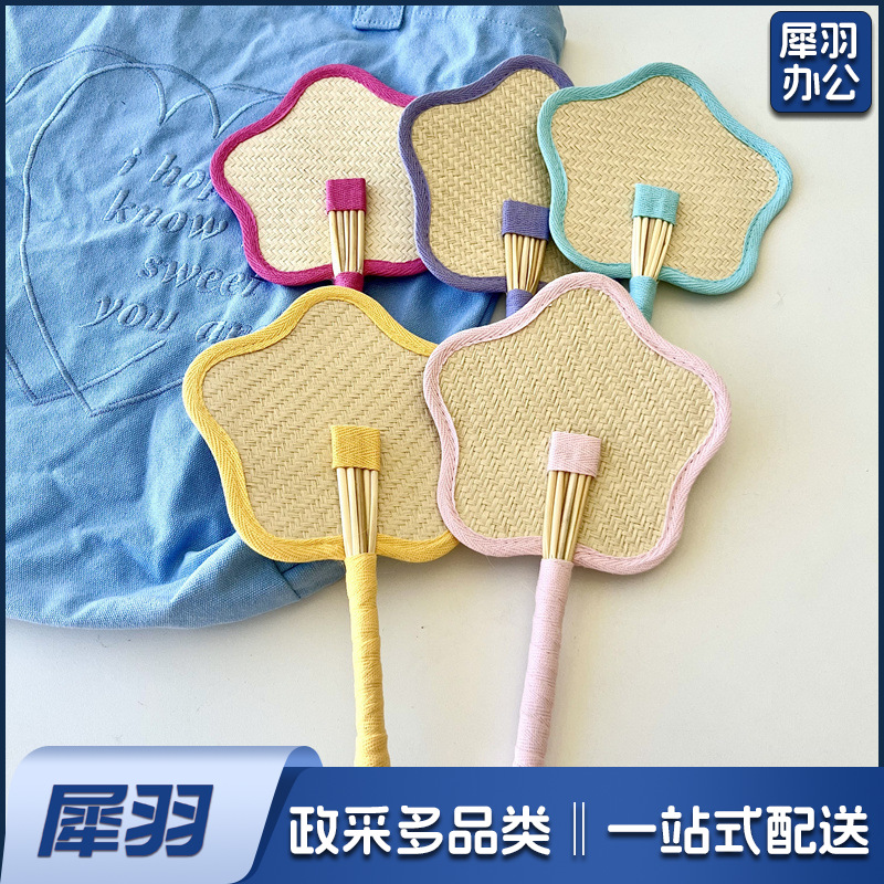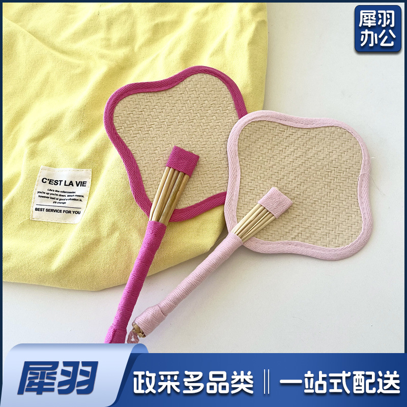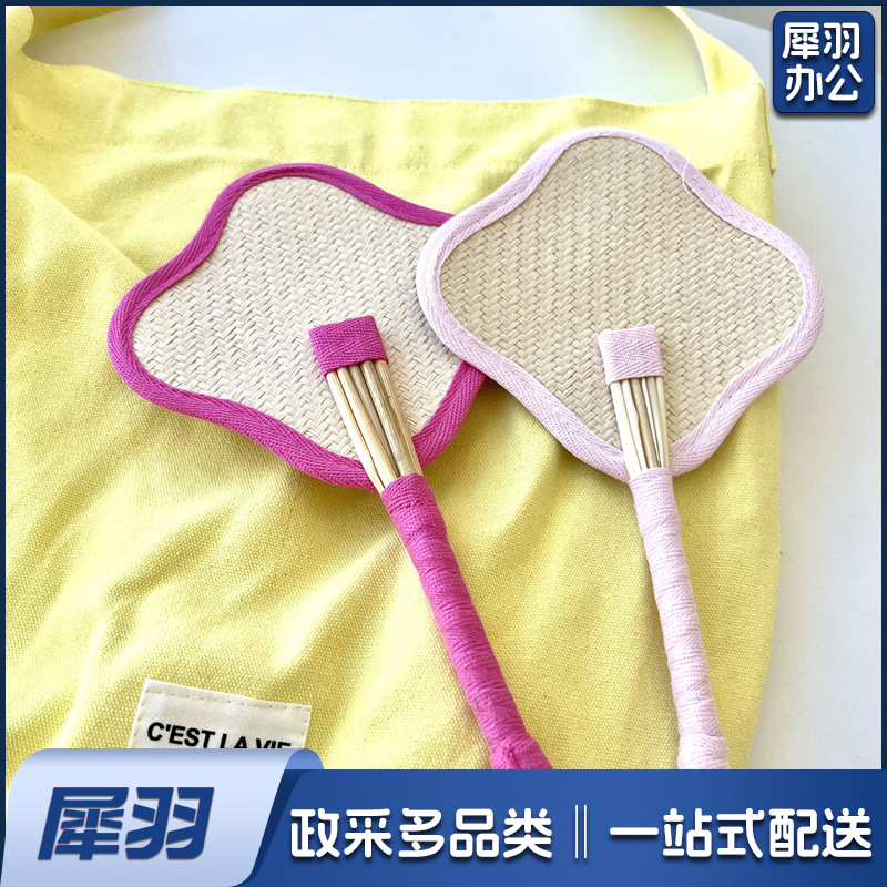 小红书同款夏日草编蒲扇麦秆便携式手摇蒲扇可爱多巴胺扇风少女心( 粉色爱心草编裸扇)