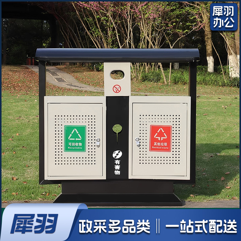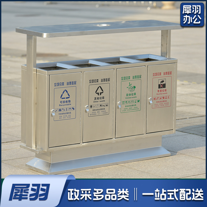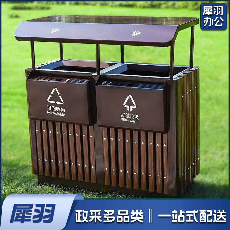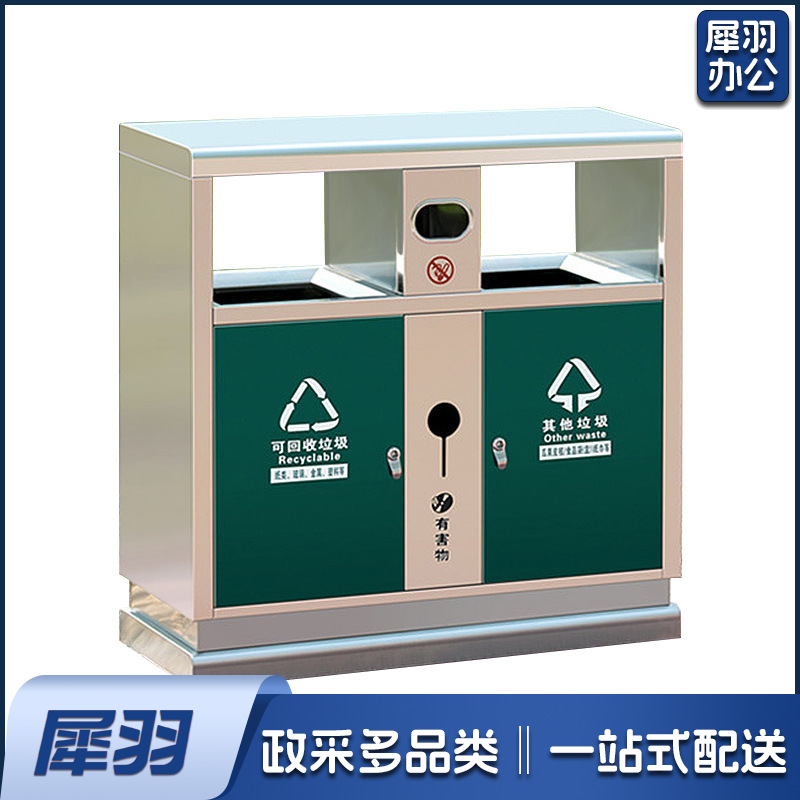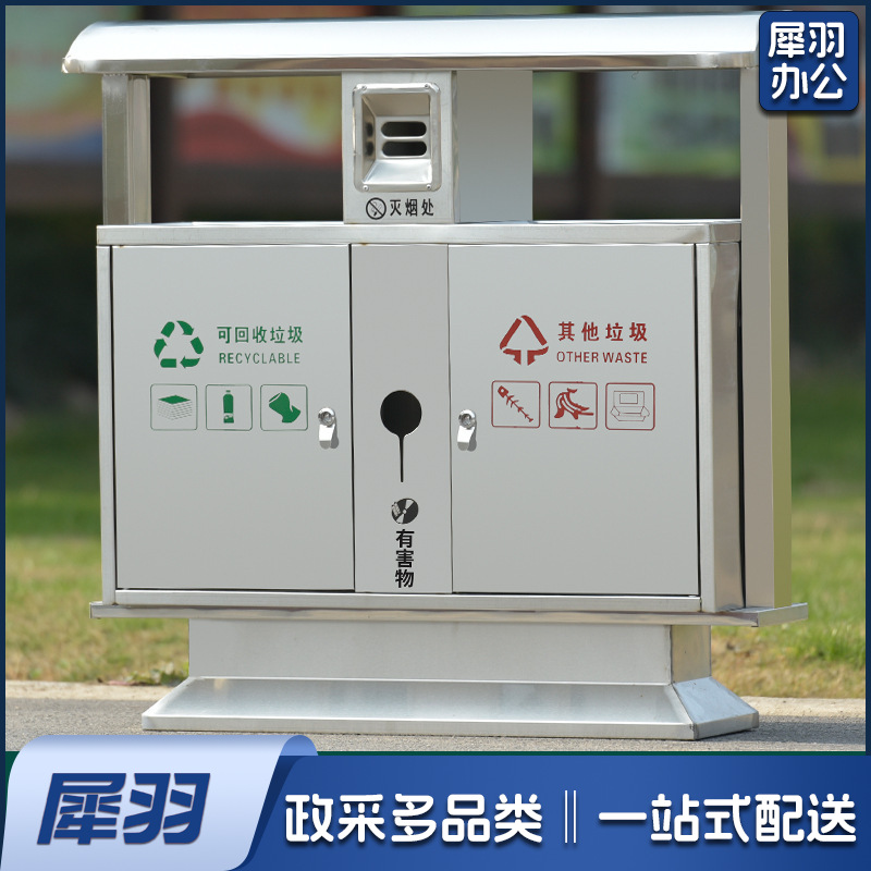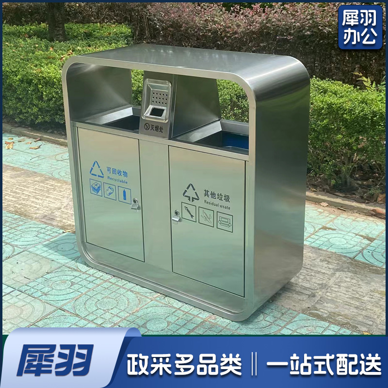 户外垃圾桶不锈钢分类果皮箱市政街道小区公园景区室外环卫垃圾箱(不锈钢双桶)