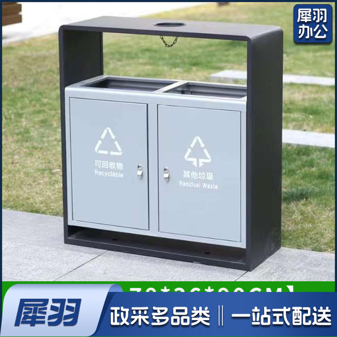 户外不锈钢分类垃圾桶双桶小区公园景区市政环卫果皮箱室外垃圾箱(镀锌新款城市桶
