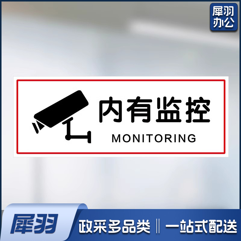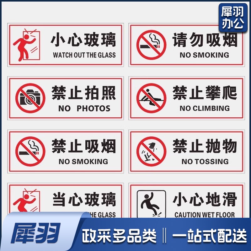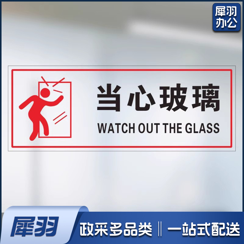 内有监控【25x10cm】小心玻璃提示禁止吸烟透明贴纸小心地滑禁止倚靠禁止翻越商场提示