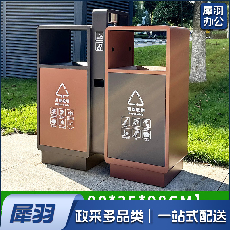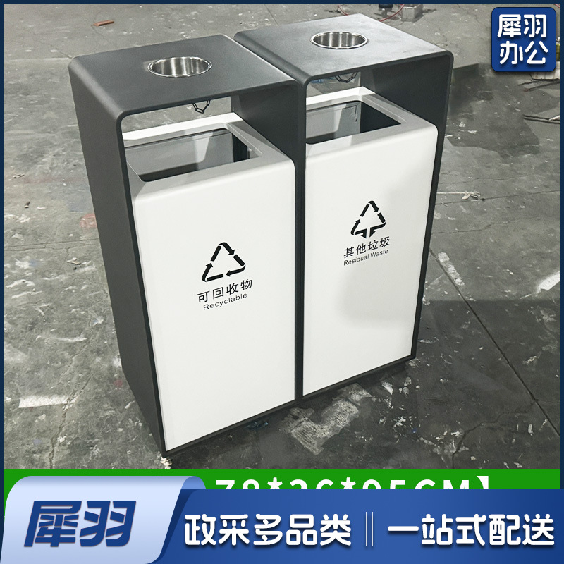 户外不锈钢分类垃圾桶双桶小区公园景区市政环卫果皮箱室外垃圾箱(【B7】不锈钢黑色桶