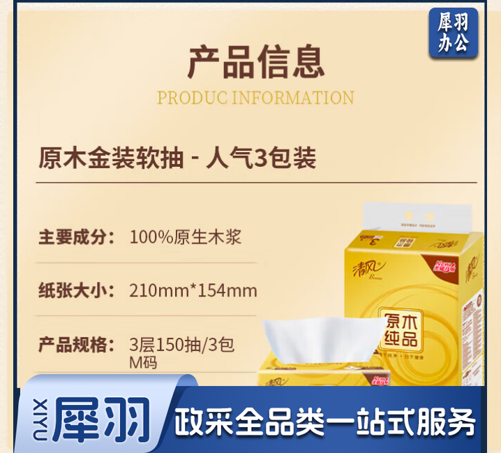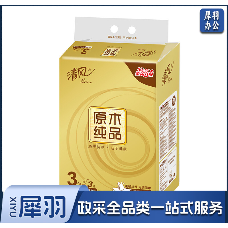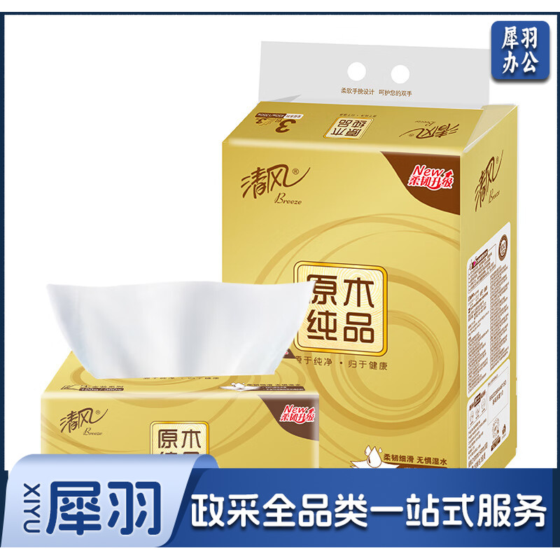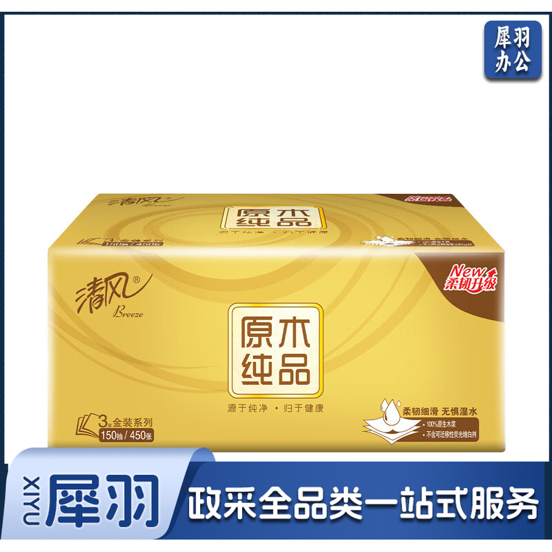 清风抽纸 原木金装 3层150抽*3包M码 亲肤无刺激 卫生纸巾 餐巾纸