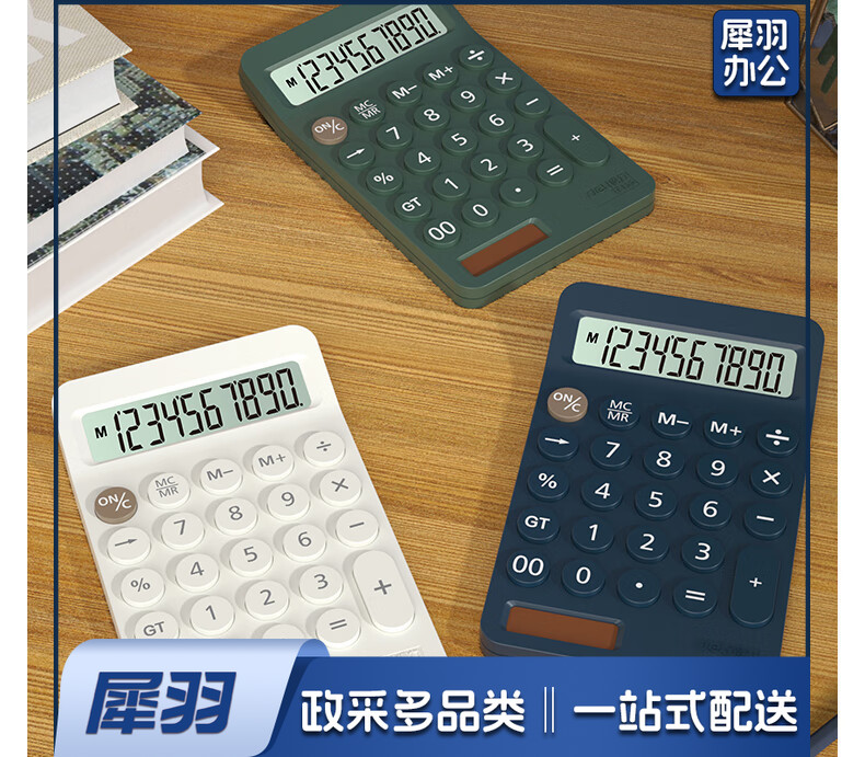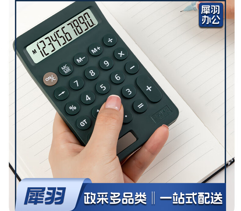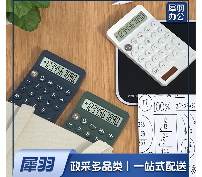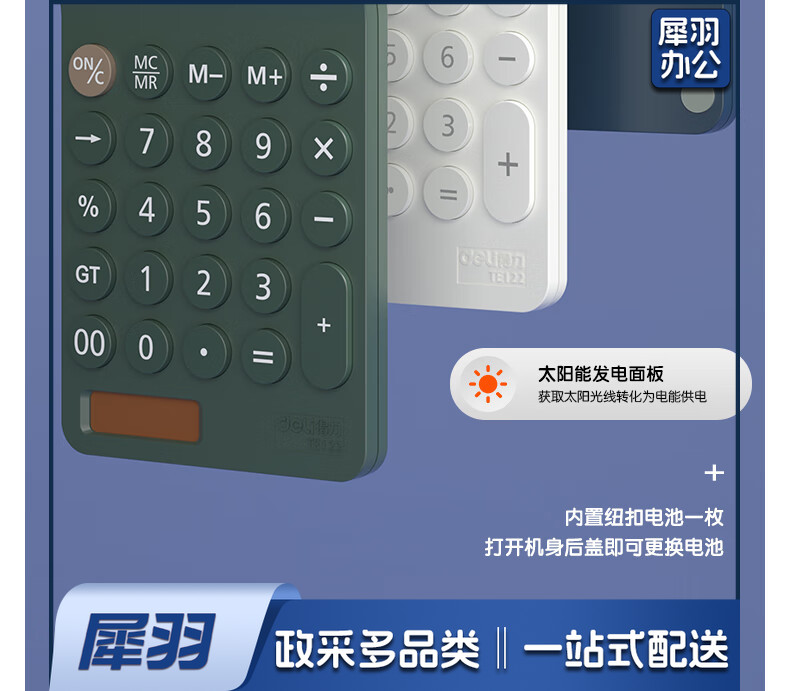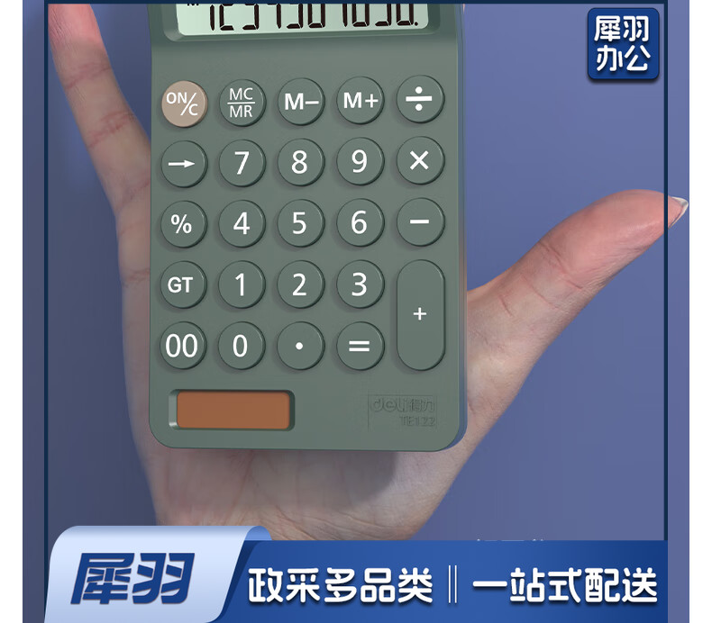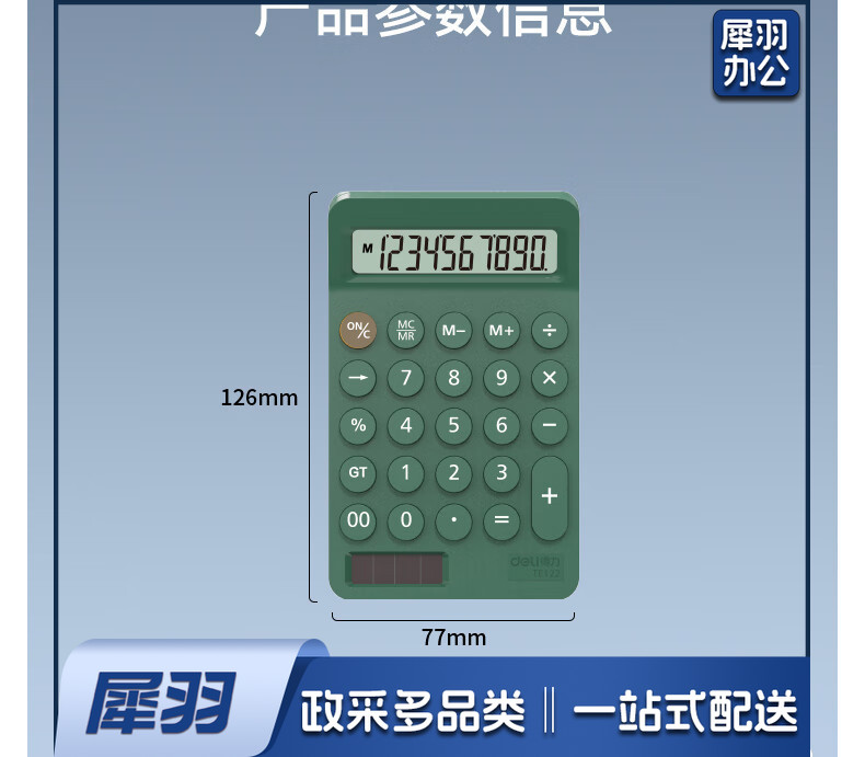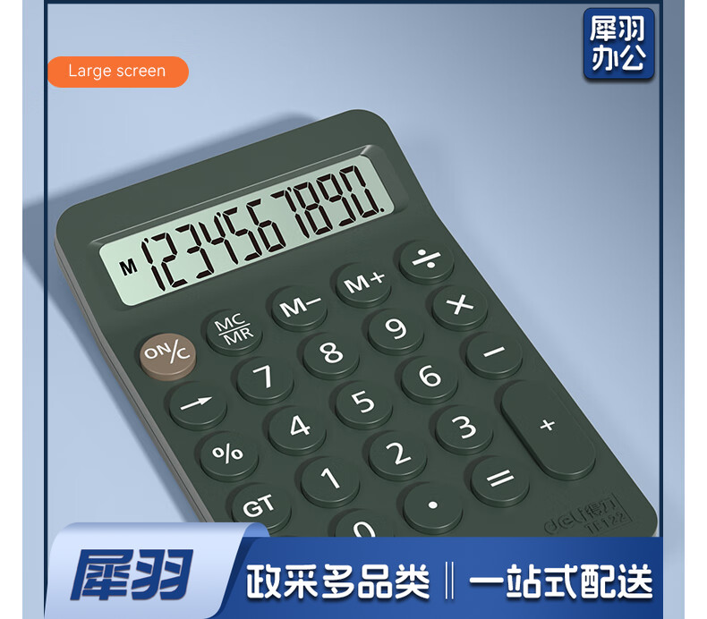 得力(deli)双电源便携款计算器 10位数宽屏桌面计算机 绿色TE122