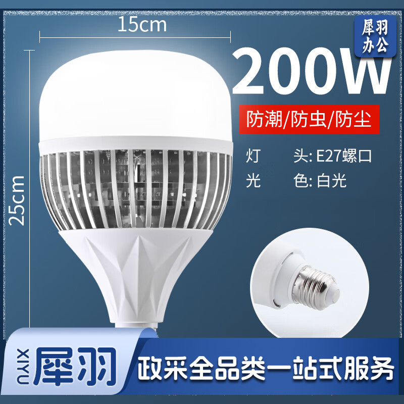 欧普照明(OPPLE)led灯泡节能大螺口家用商用大功率光源超亮E27球泡螺旋200W【鳍片水滴节能款】1个装 白