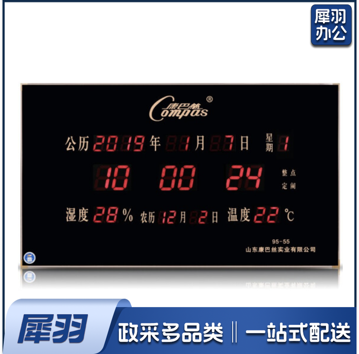康巴丝 万年历电子挂钟 超薄钟表 95*55湿度数码 卫星对时