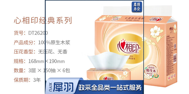 心相印经典花语系列抽纸3层干湿两用家用餐巾纸面巾纸母婴可用商超同款 【到手整提6包】L码·共900抽