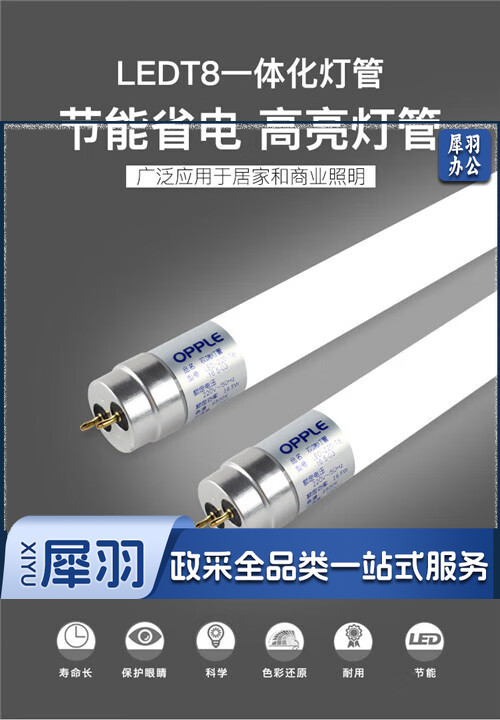 欧普(OPPLE)T8T5LED玻璃灯管0.6米9w0.9米12w1.2米16W节能长条日光灯 0.6米16w灯管一支装