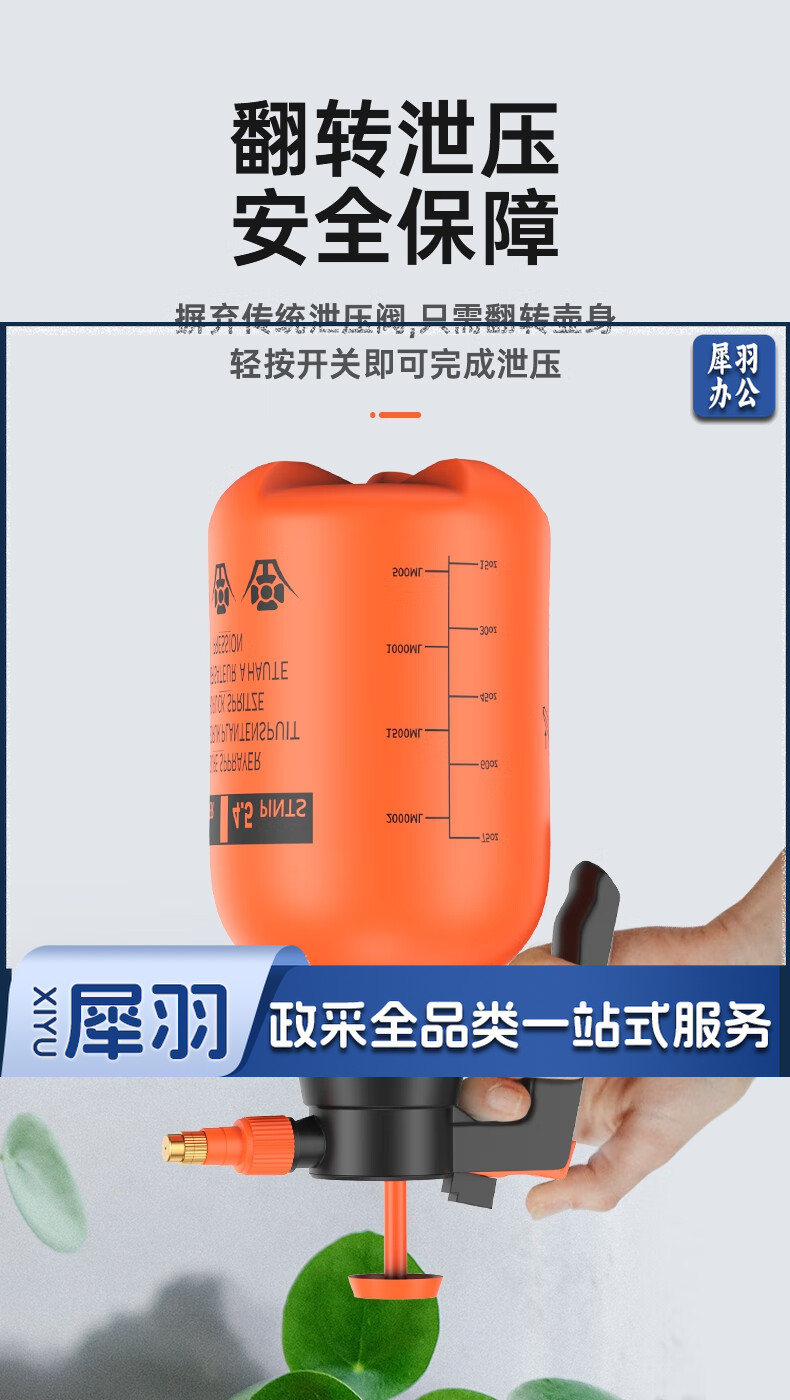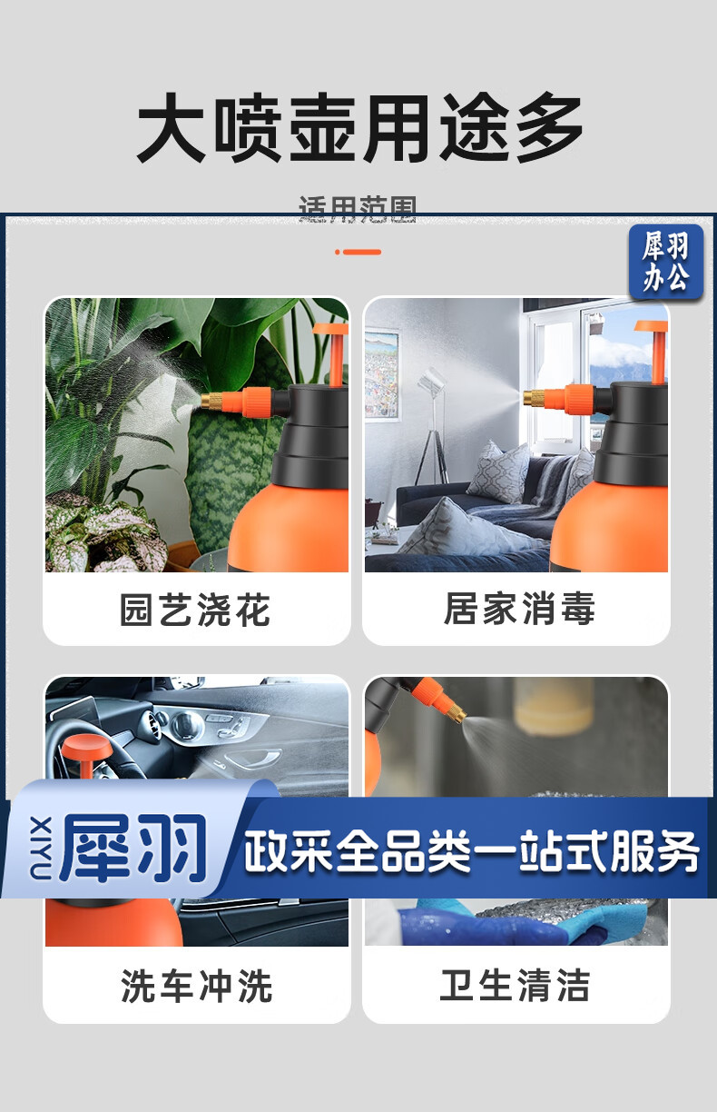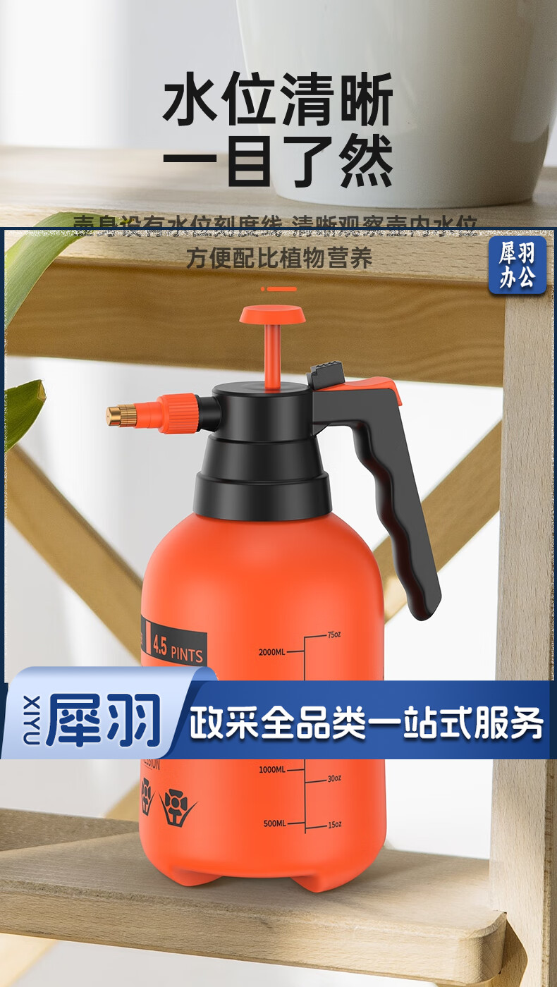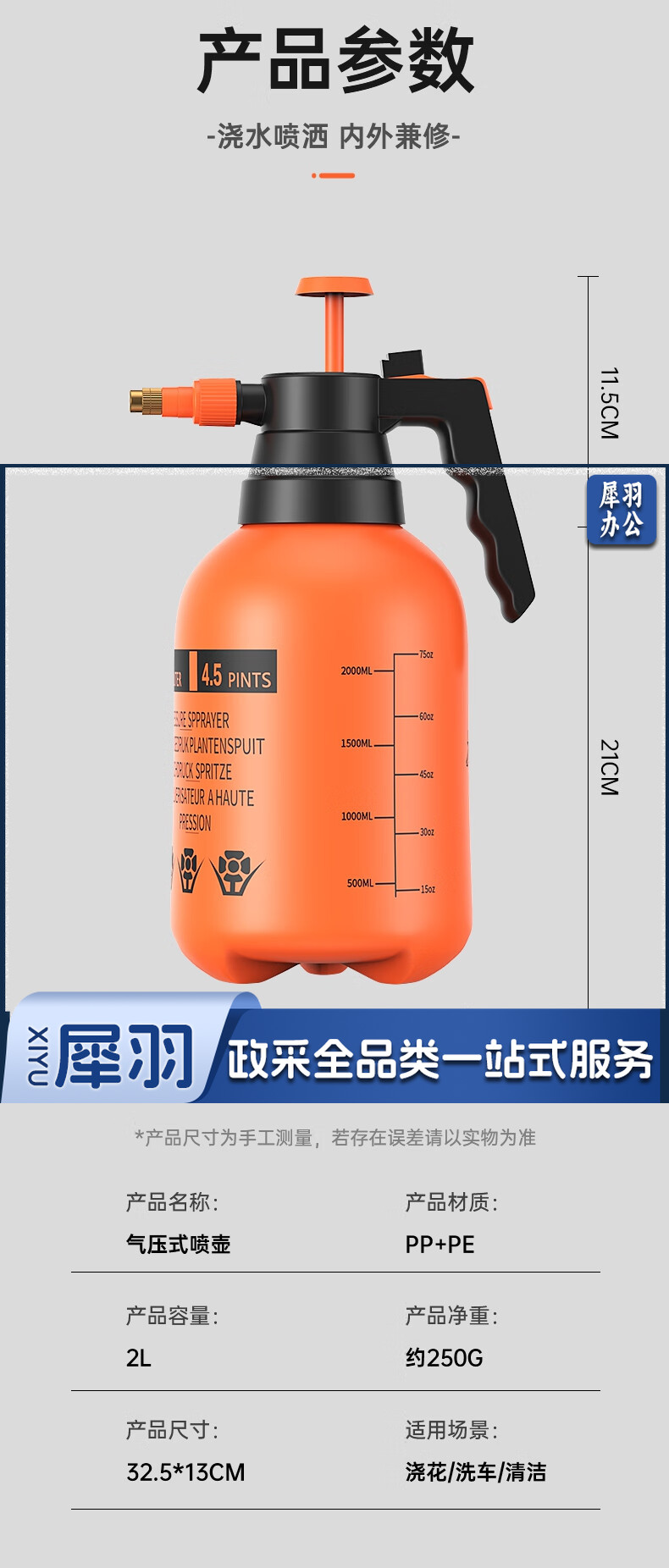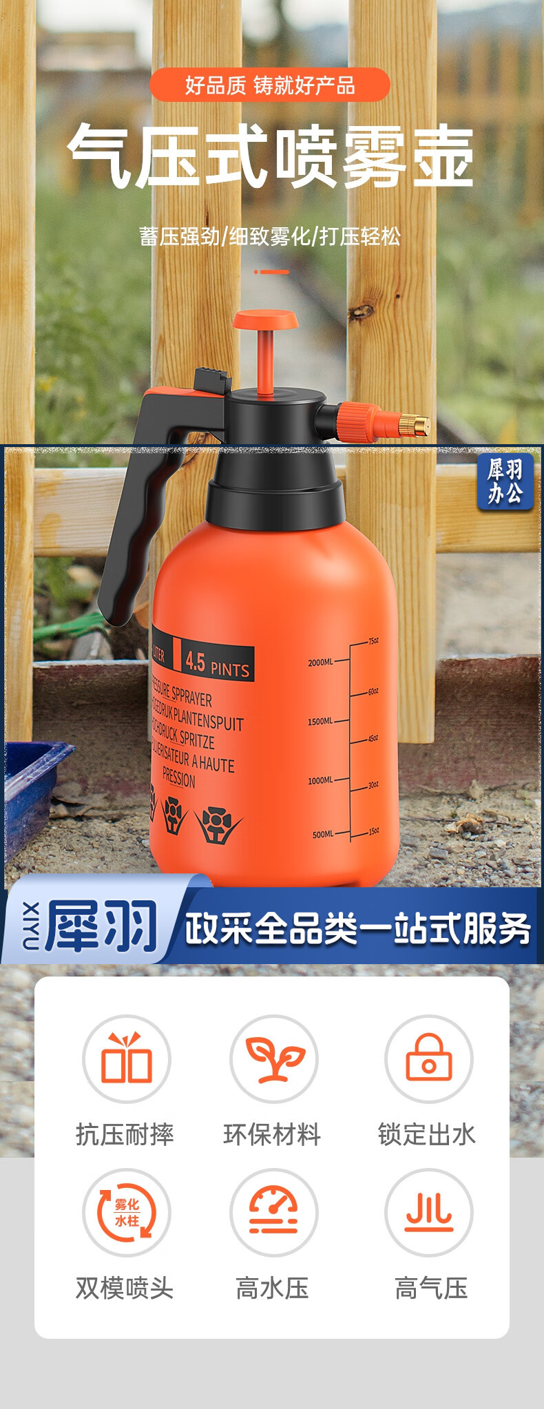 喷壶浇花喷水壶洗车喷壶喷雾器高压洒水壶气压式 2L橙色