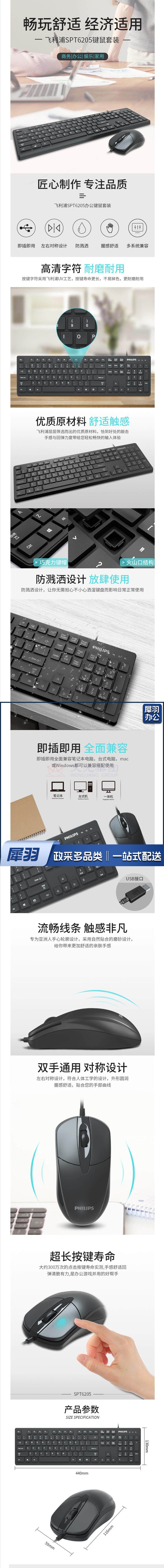 飞利浦/Philips SPT6205 有线键盘/办公键鼠套装 黑色(10套起售,偏远区域下单请电话咨询)