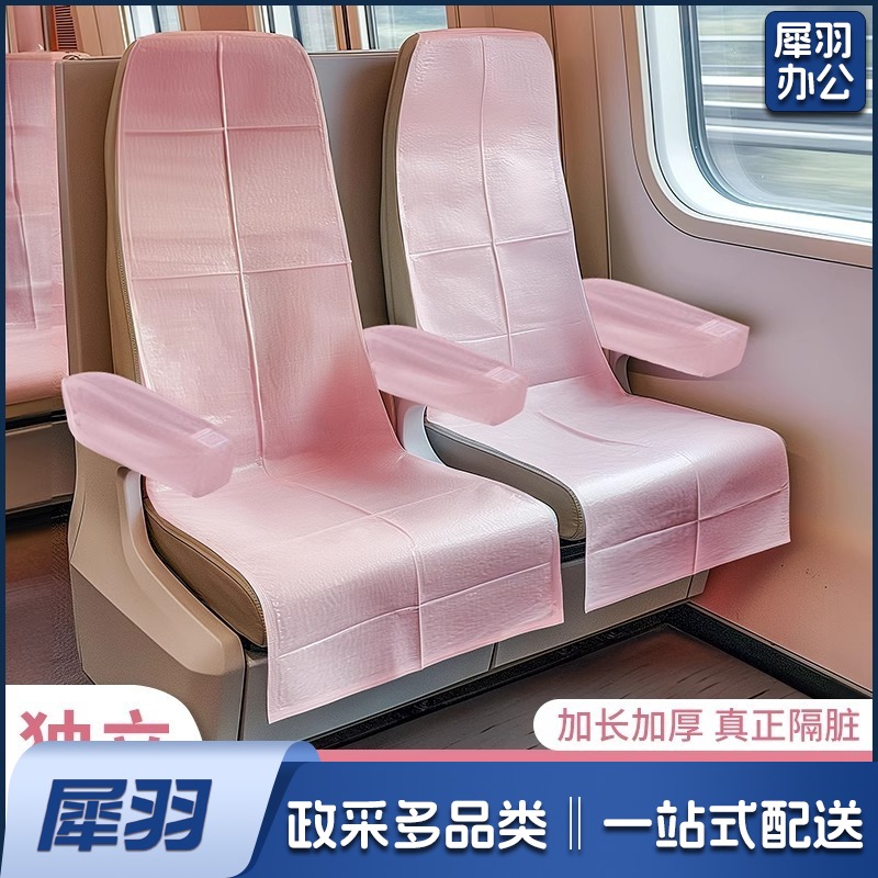 一次性高铁座椅套加厚加大隔脏无纺布火车飞机公共座椅垫(粉色座椅套带扶手套)