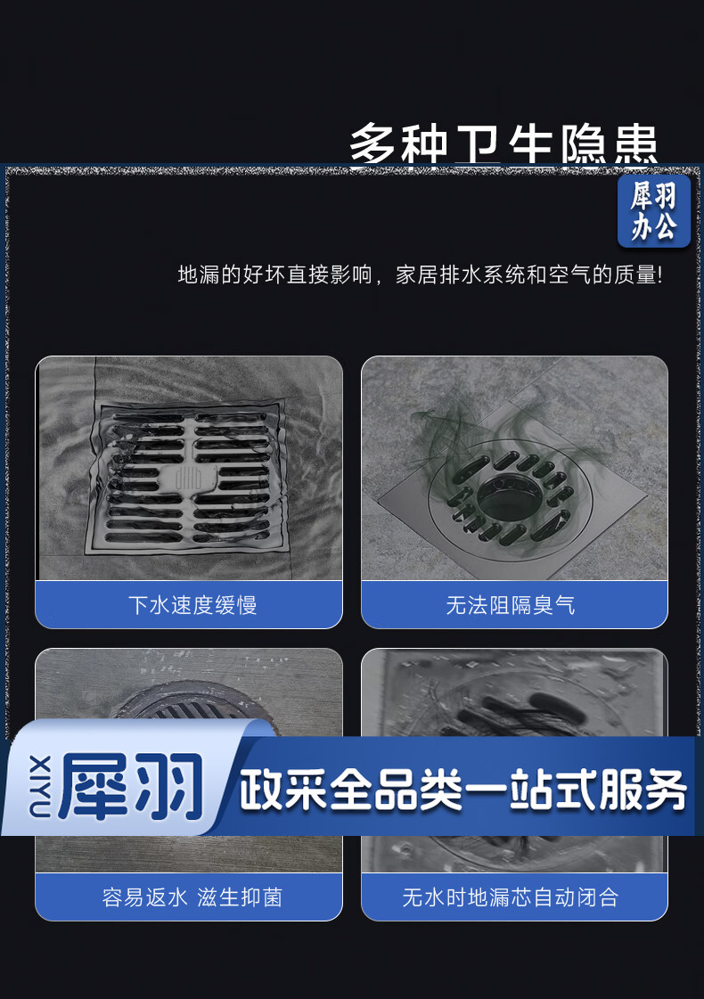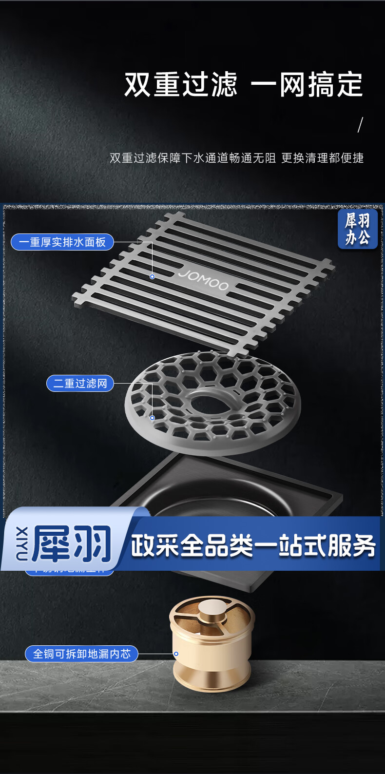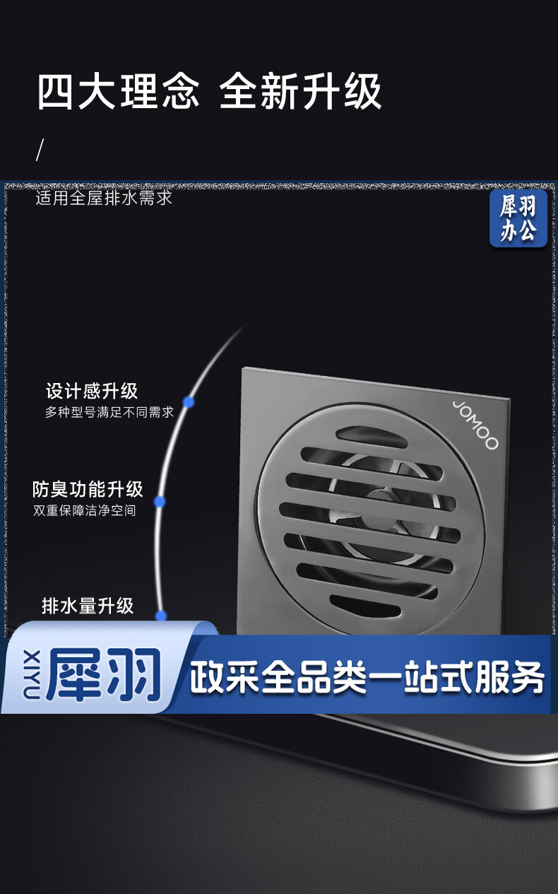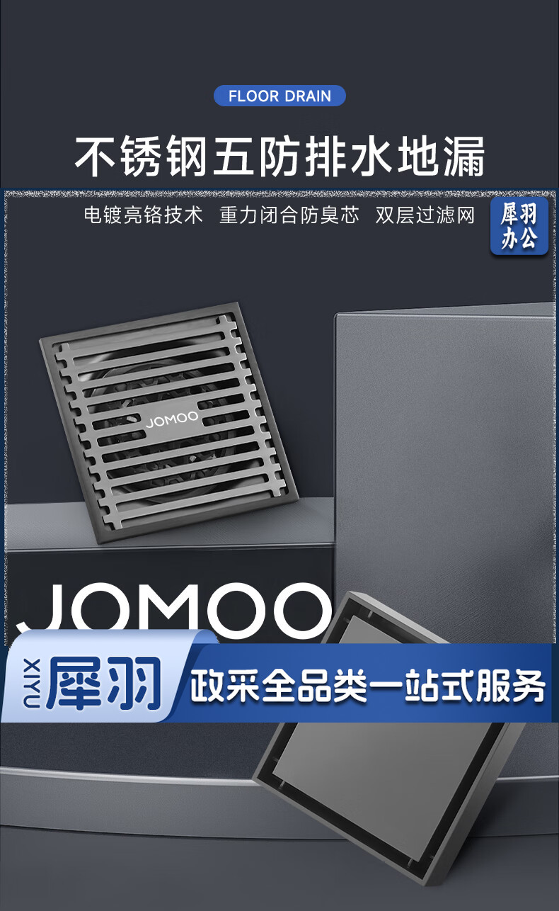JOMOO九牧九牧枪灰地漏加厚家用不锈钢浴室卫生间洗衣机通用防臭防虫防返水 枪灰竹排单用地漏